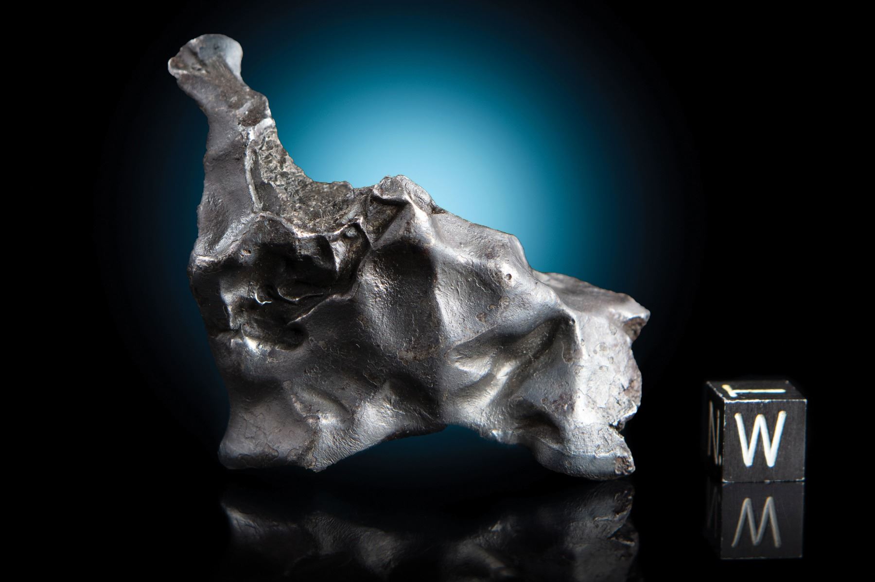 Iron meteorite, IIAB. Witnessed fall February 12, 1947, eastern Siberia. Complete individual hybrid weighing 127.5 grams and measuring 74 mm x 51 mm x 20 mm. This fine example displays characteristics synonymous with coveted Sikhote-Alin individuals. High-speed passage through Earth’s atmosphere has resulted in its surface melting and flowing into multiple, well-formed and overlapping regmaglypts (thumbprints) and an appealing sculptural shape.
