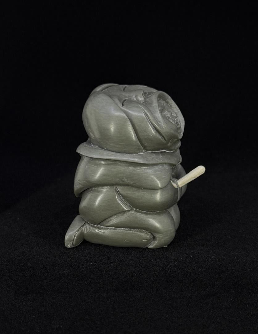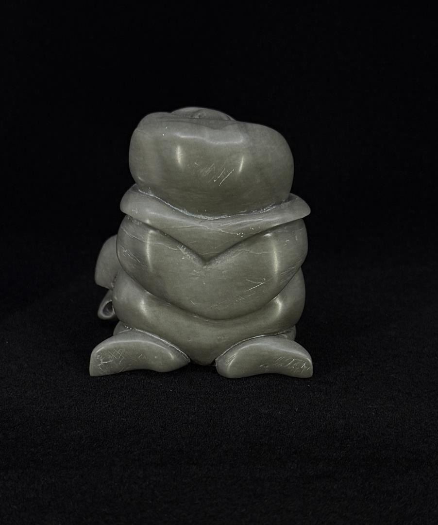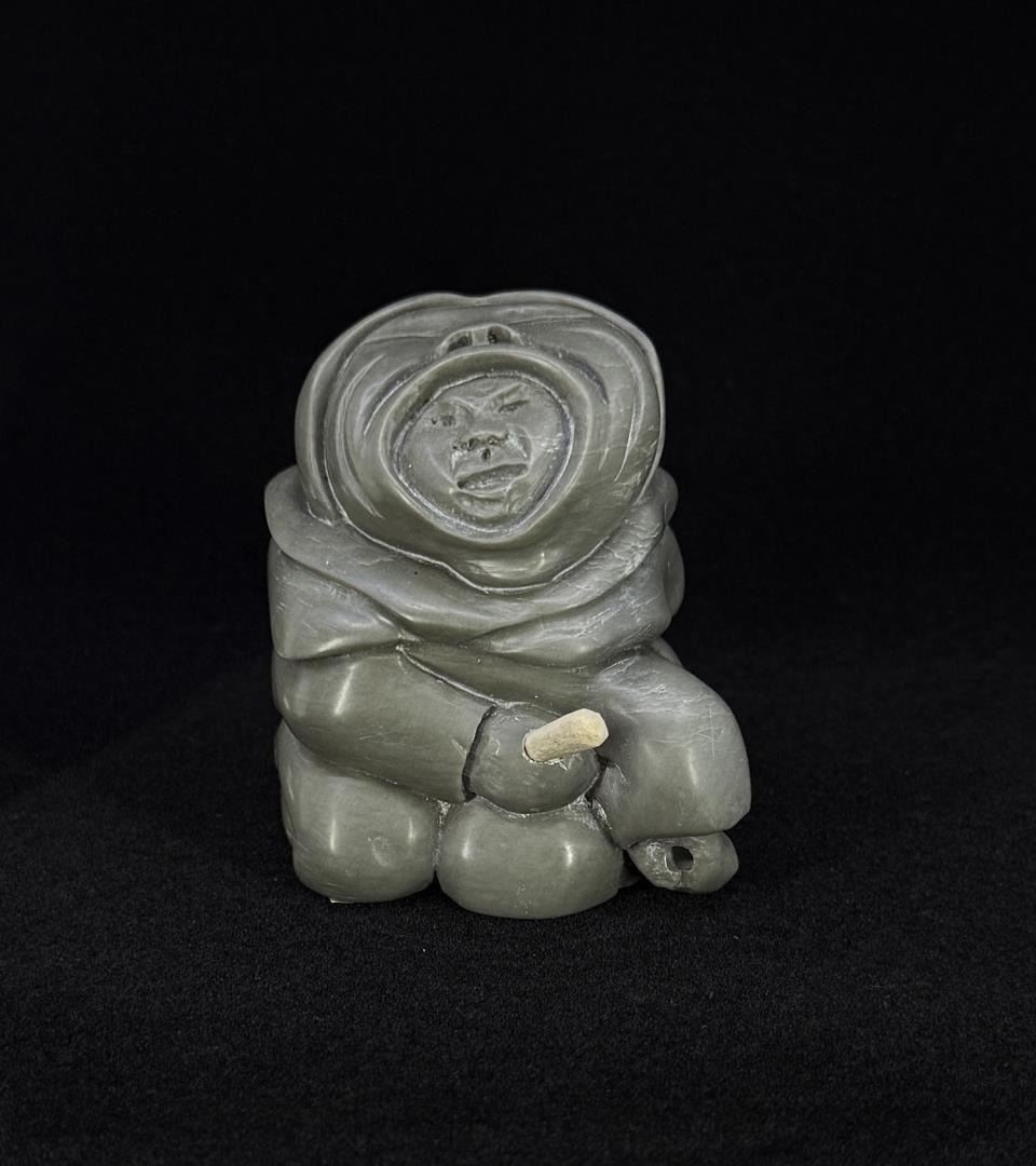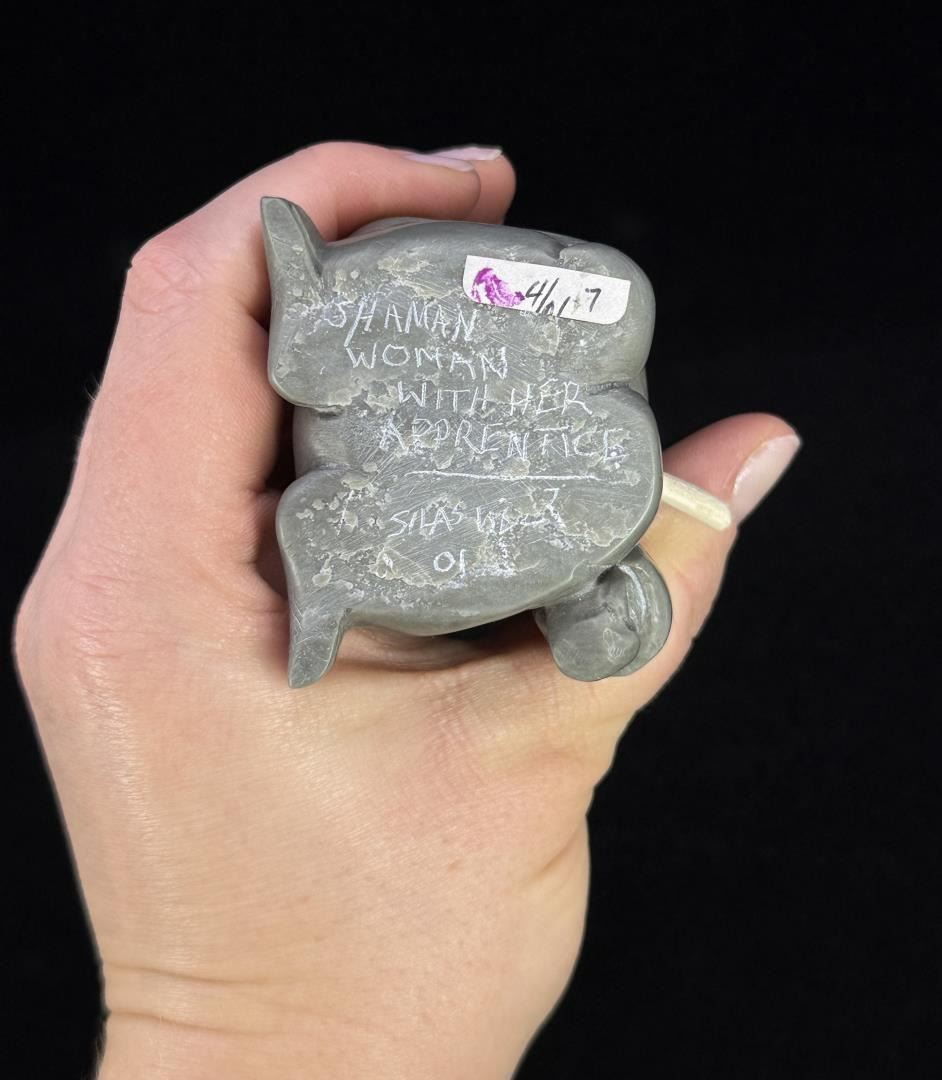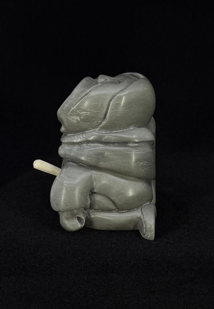 2 1/2" by 2 1/4" by 2 1/8". Provenance: Heard Museum, Arizona; Private Collection, New York. Silas Kayakjuak (Born 1956) is active/lives in Canada. Silas Kayakjuak is known for Inuit Sculpture. Silas Kayakjuak was born in 1956 in Hall Beach, the son of two artists, Joanasi and Martha Kayakjuak. Silas learned to carve at an early age by watching other family members carving. He began to carve at the age of eight and produced his first serious carving when he was twelve. Natural talent, a keen eye for balance and movement in the human figure, experience of hunting and living on the land combine to give Silas's work an appealing warmth and charm.