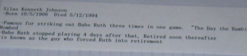 Picture. Famous for striking out Babe Ruth three times in one game.