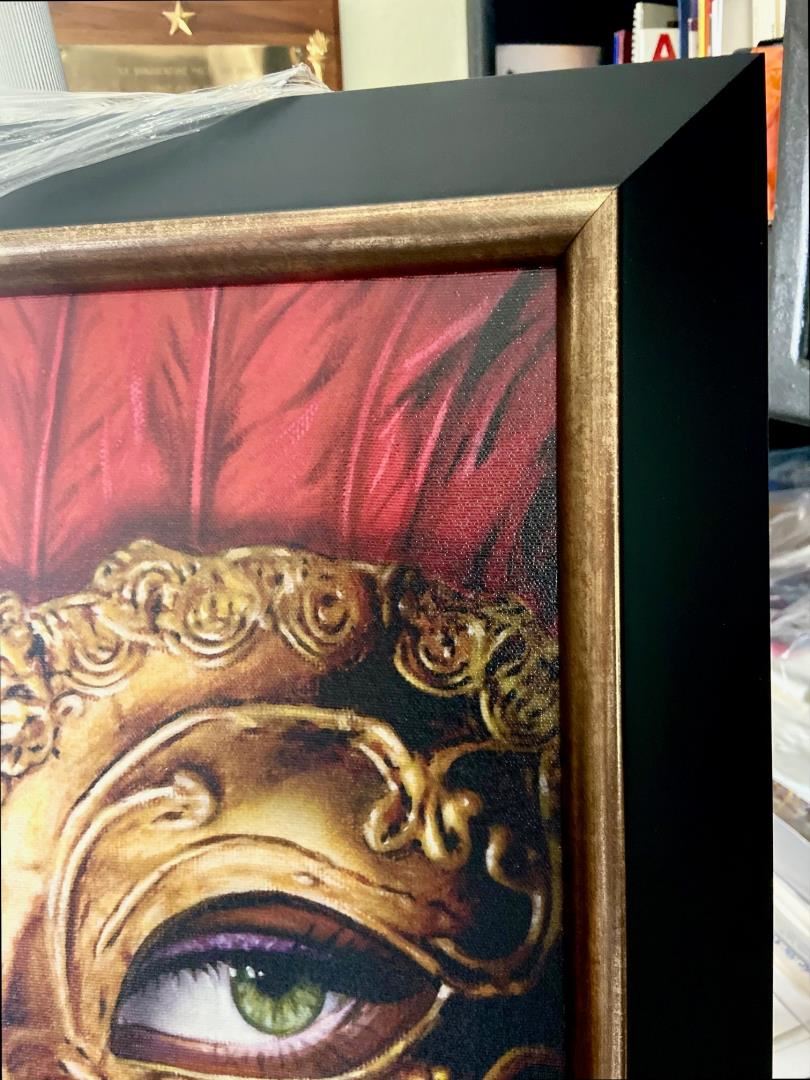 A 24x18" stretched, previously framed, giclee on canvas by Dellorco. # 12/150 The edges show wear from the framed but the face of the print is fine. COA.