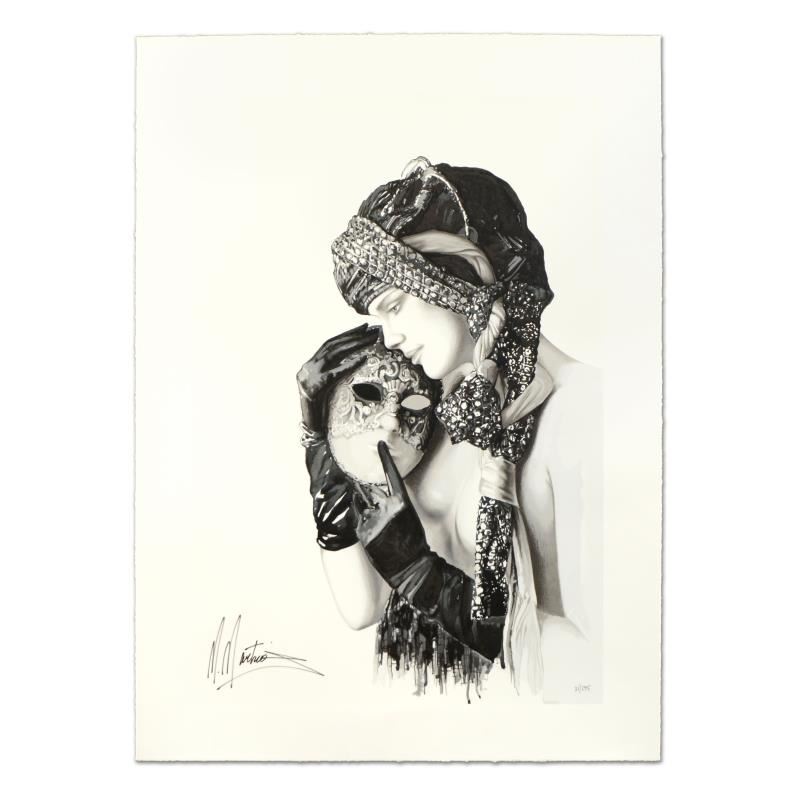 "Silent Advice" is a limited edition serigraph on deckle edge paper by Martiros Manoukian, numbered and hand signed by the artist. Includes Certificate of Authenticity. Measures approx. 27" x 37.5" (with border), 20.5" x 28.5" (image).
