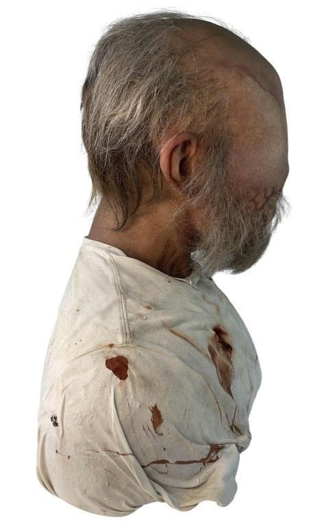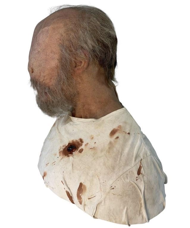 Original mask (with a custom made display bust) used in the M. J. Bassett directed supernatural horror film 'Silent Hill Revelation' (2012), which plot follows Heather Mason (Clemens), who, discovering on the eve of her eighteenth birthday that her presumed identity is false, is drawn to the town of Silent Hill.