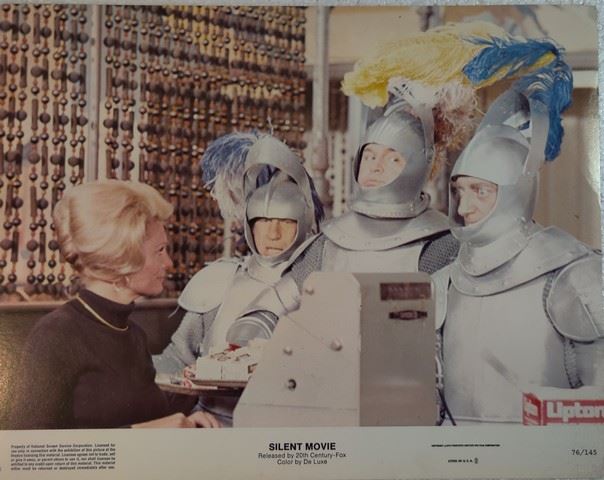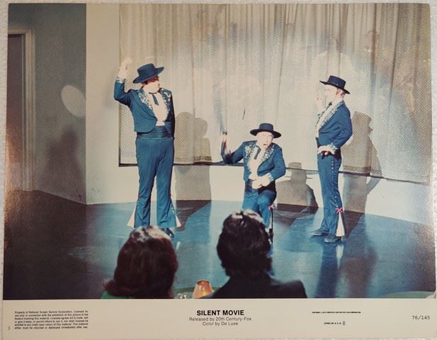 Silent Movie (Crossbow Productions, 1976) lobby card. Comedy, Satire. Starring Mel Brooks, Marty Feldman, Dom DeLuise, Sid Caesar, Harold Gould, Ron Carey, Bernadette Peters, Carol Arthur, Burt Reynolds, James Caan, Liza Minnelli, Anne Bancroft, Marcel Marceau, Paul Newman. Directed by Mel Brooks. Very minor edge wear. Near Mint. (11"x14").