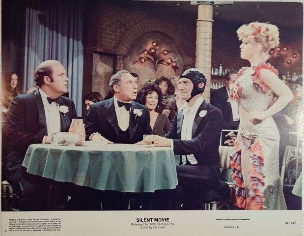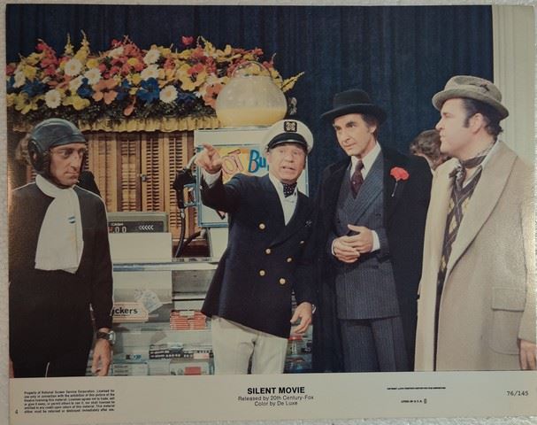 Silent Movie (Crossbow Productions, 1976) lobby card. Comedy, Satire. Starring Mel Brooks, Marty Feldman, Dom DeLuise, Sid Caesar, Harold Gould, Ron Carey, Bernadette Peters, Carol Arthur, Burt Reynolds, James Caan, Liza Minnelli, Anne Bancroft, Marcel Marceau, Paul Newman. Directed by Mel Brooks. Very minor edge wear. Near Mint. (11"x14").