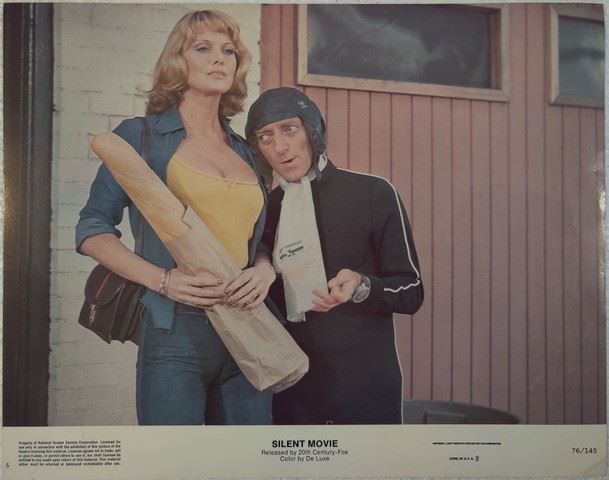 Silent Movie (Crossbow Productions, 1976) lobby card. Comedy, Satire. Starring Mel Brooks, Marty Feldman, Dom DeLuise, Sid Caesar, Harold Gould, Ron Carey, Bernadette Peters, Carol Arthur, Burt Reynolds, James Caan, Liza Minnelli, Anne Bancroft, Marcel Marceau, Paul Newman. Directed by Mel Brooks. Very minor edge wear. Near Mint. (11"x14").