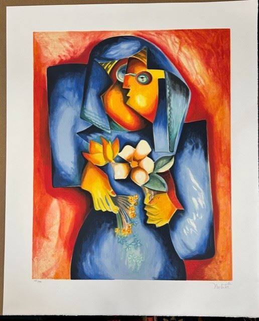 A color lithograph by Nechita, 35x28.5", hand-pulled in a Paris studio in Montmarte that Chagall worked at. We have numbers 125-127,149,151-153,155-157,167,182 / 199.