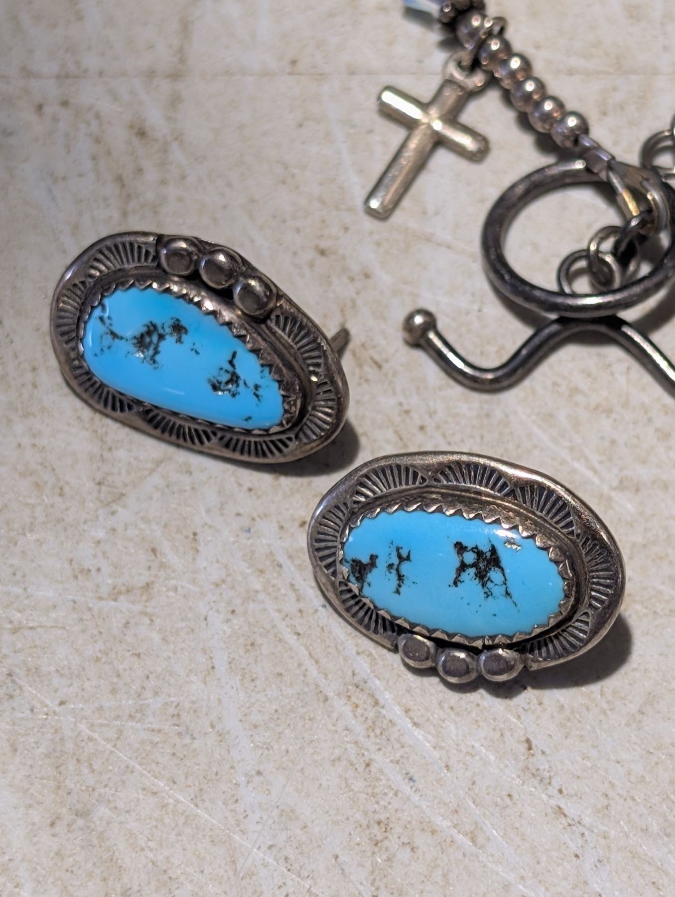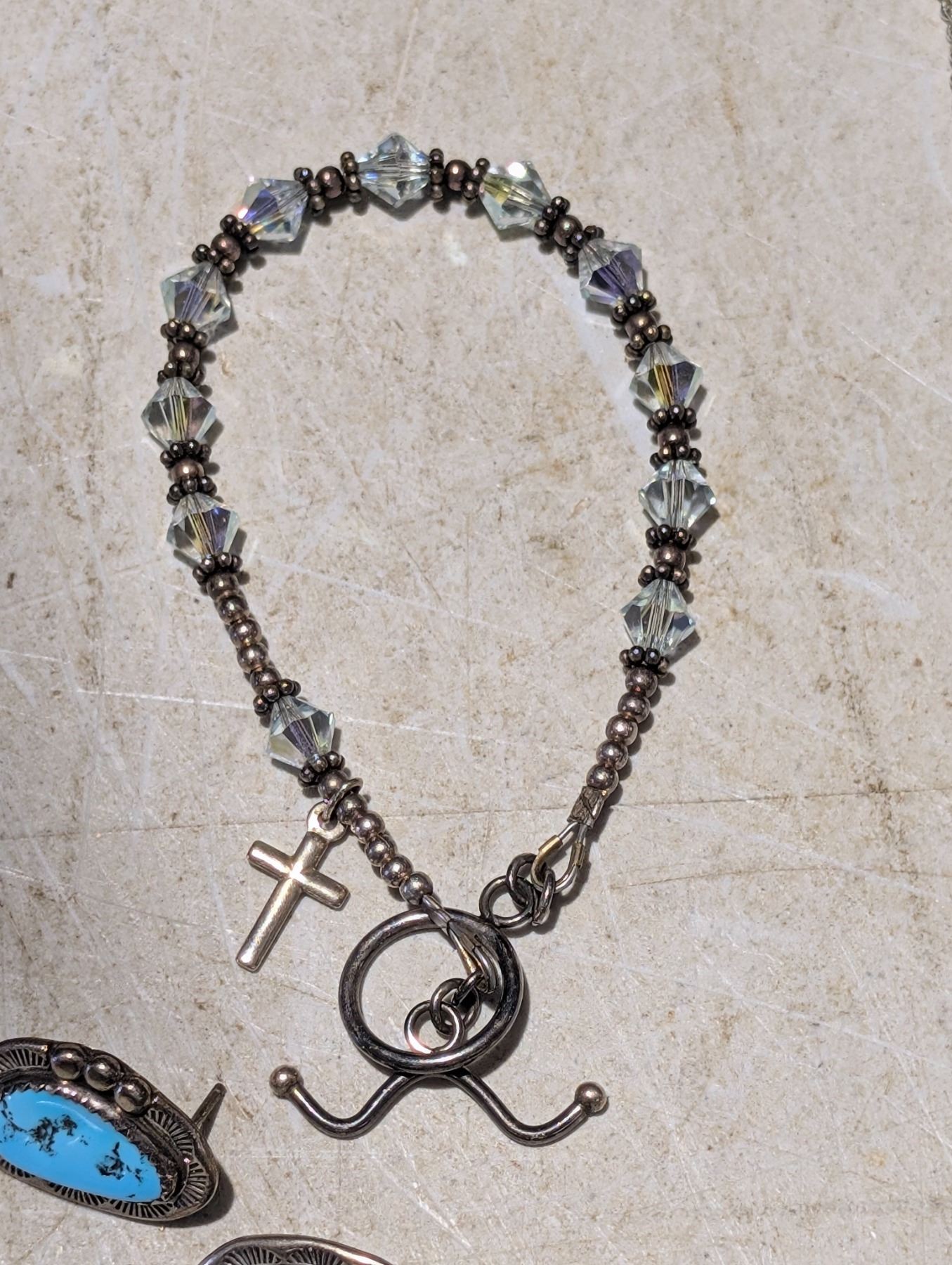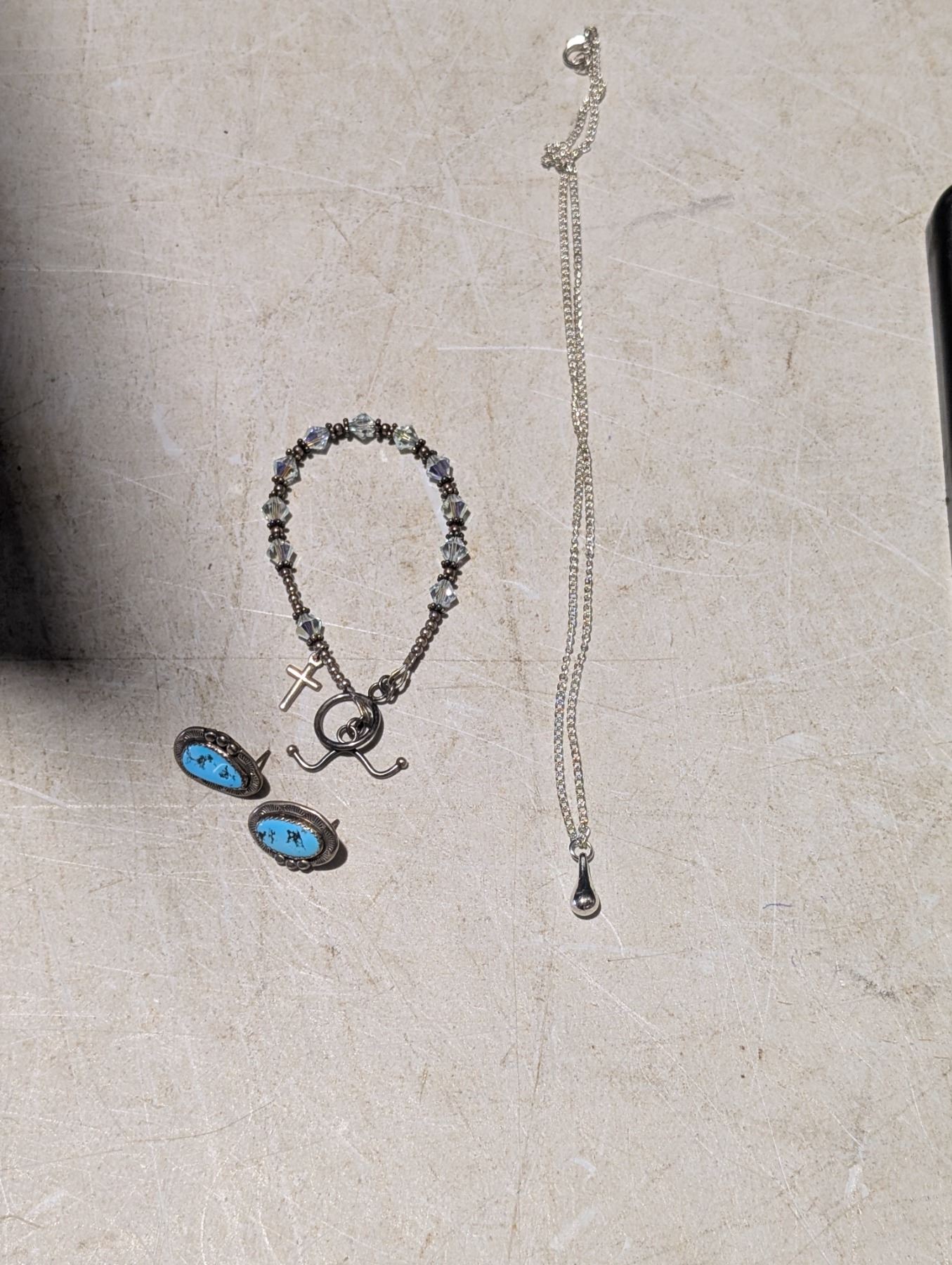 Siler Tear Drop Necklace, Holy Bless Cross Chain , Pair of Earrings