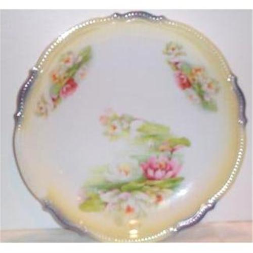 This fantastic Luster Decorated Silesia Large Charger is decorated with lovely blooming water lilies. The charger measures 11.75" in diameter and is in SUPERIOR condition with no chips, cracks, dings or hairlines and it is marked on the back with the familiar Silesia Logo.