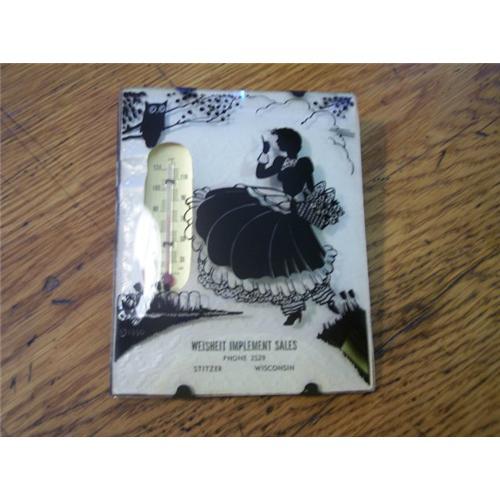 Great little advertising piece.Convex glass silhouette picture.Advertising says -WEISHEIT IMPLEMENT SALES-PHONE 2529-STITZER WISCONSIN.No chips or cracks.