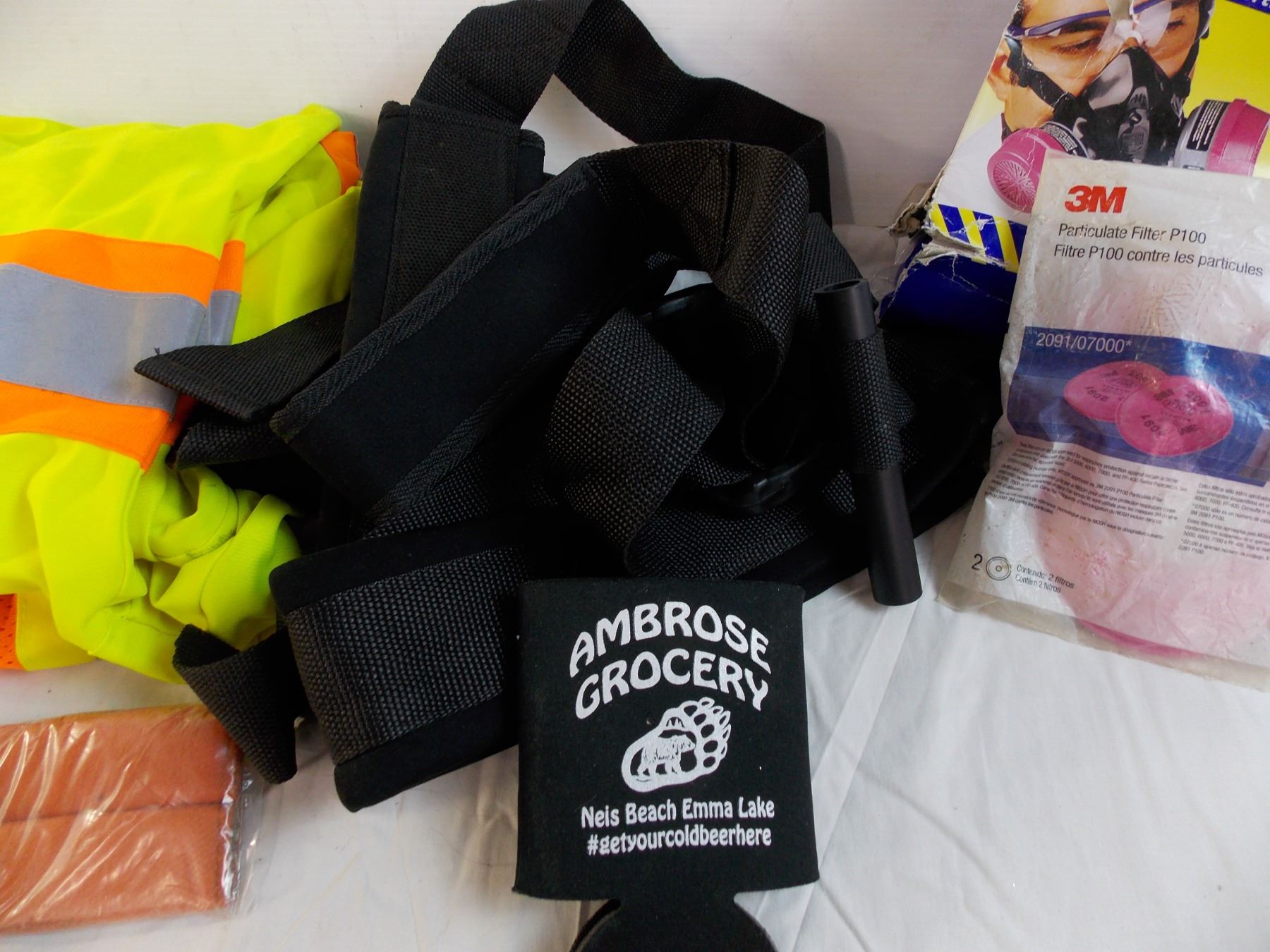 Silicone half mask, filter, hard hat, construction vest, misc