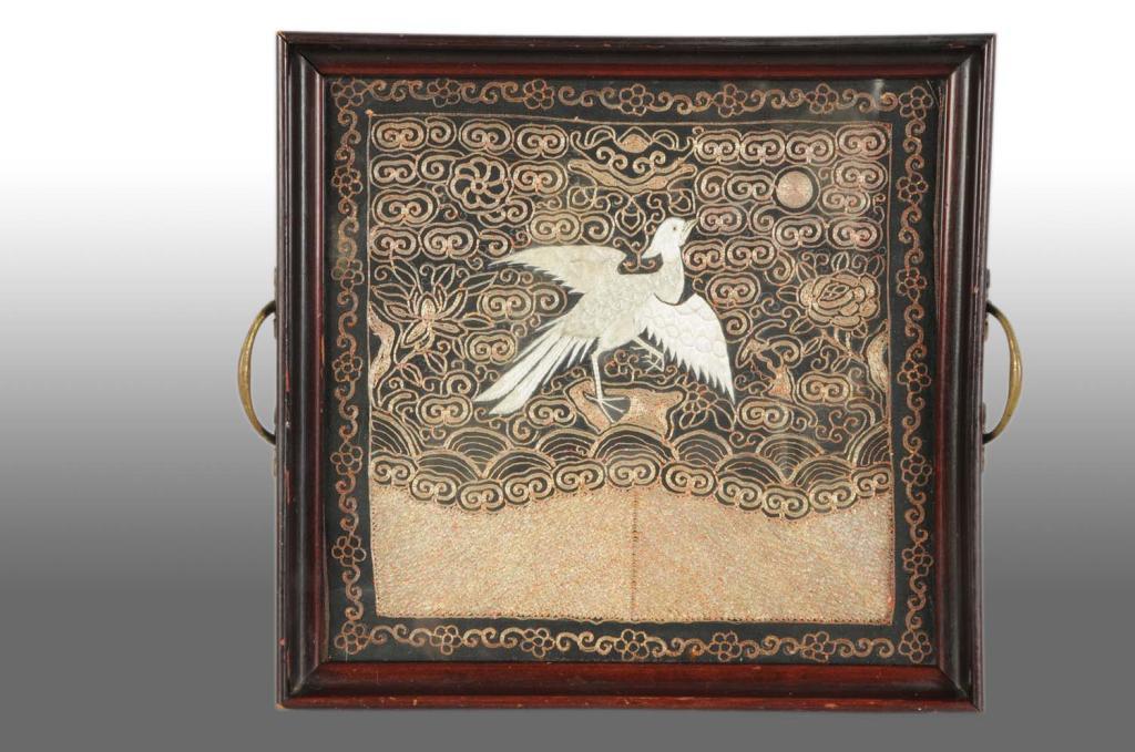 Possibly Japanese. Framed under glass frame with tray handles. Condition (Excellent). Size 12" x 12".