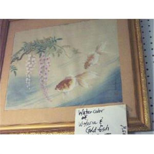 Oriental painting of Koi Fish, original frame; beautiful.</em></td>