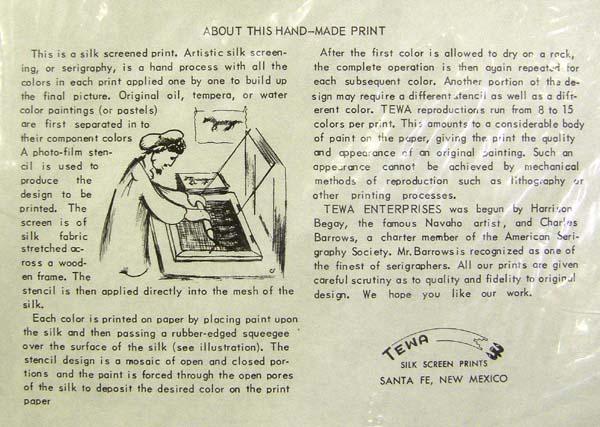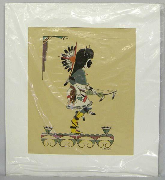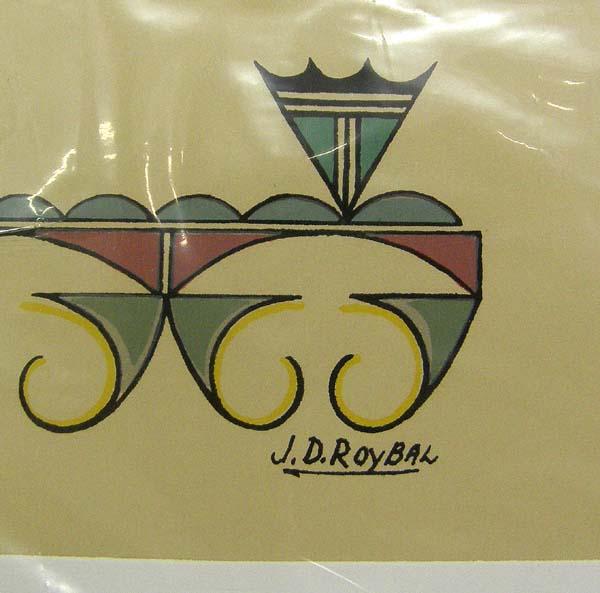 Silk Screened Print By ''Tewa'' J. D. Roybal from San Ildefonso Pueblo. Information about the artist on the back. Measures approx. 12'' x 10''. SHI $35.