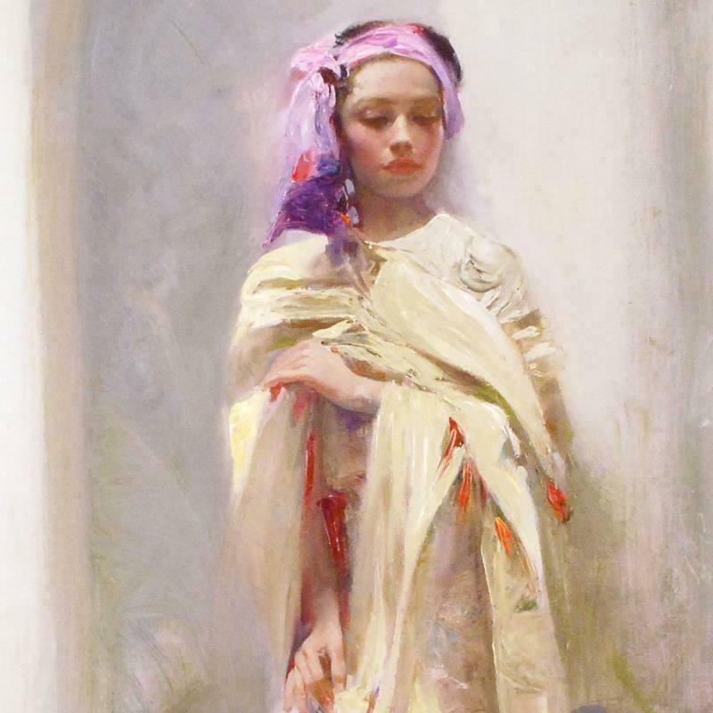 "Silk Shawl" is a limited edition giclee on stretched canvas that has been hand-embellished by Pino himself, AP Numbered and Hand signed by Pino (1939-2010). Includes Certificate of Authenticity. Measures approx. 24" x 40" (image).