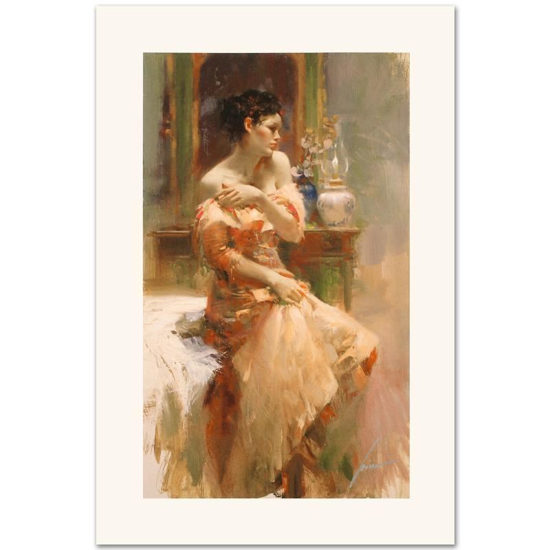 "Silk Taffeta" is a limited edition giclee on canvas by Pino (1931-2010), numbered and hand signed by the artist. Includes Certificate of Authenticity. Measures approx. 12" x 20" (image).