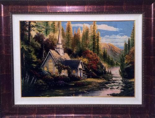 Wooden framed landscaping vegetable dye hand woven silk blend baby lamb's wool pile Tabriz Rug. Rug size: 38x26 inches. This beautiful piece is weaved in city of Tabriz in Iran. It is really a nice piece and extremely alive. Tabriz rug is very famous for its rug weaving techniques by using double knot. due to this fact Tabriz rug are best in frame rug and can show lot of details. The quality of Tabriz rug is among the highest and best in the world of rugs. Tabriz frame rug called tableau rug. This beautiful master piece comes with a custom made frame and the picture speaks for itself. This piece is a real museum quality item. Size: 51X38 inches.