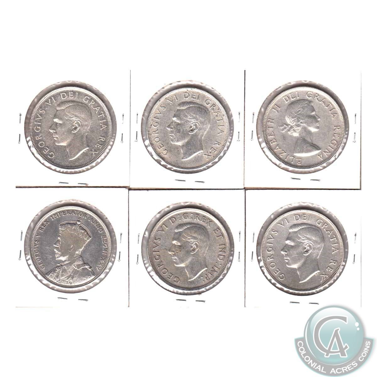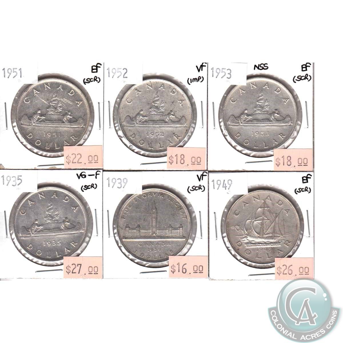Silver $1 1935, 1939, 1949, 1951, 1952, 1953 NSS, Ranging from VG to EF, minor problems. 6pcs