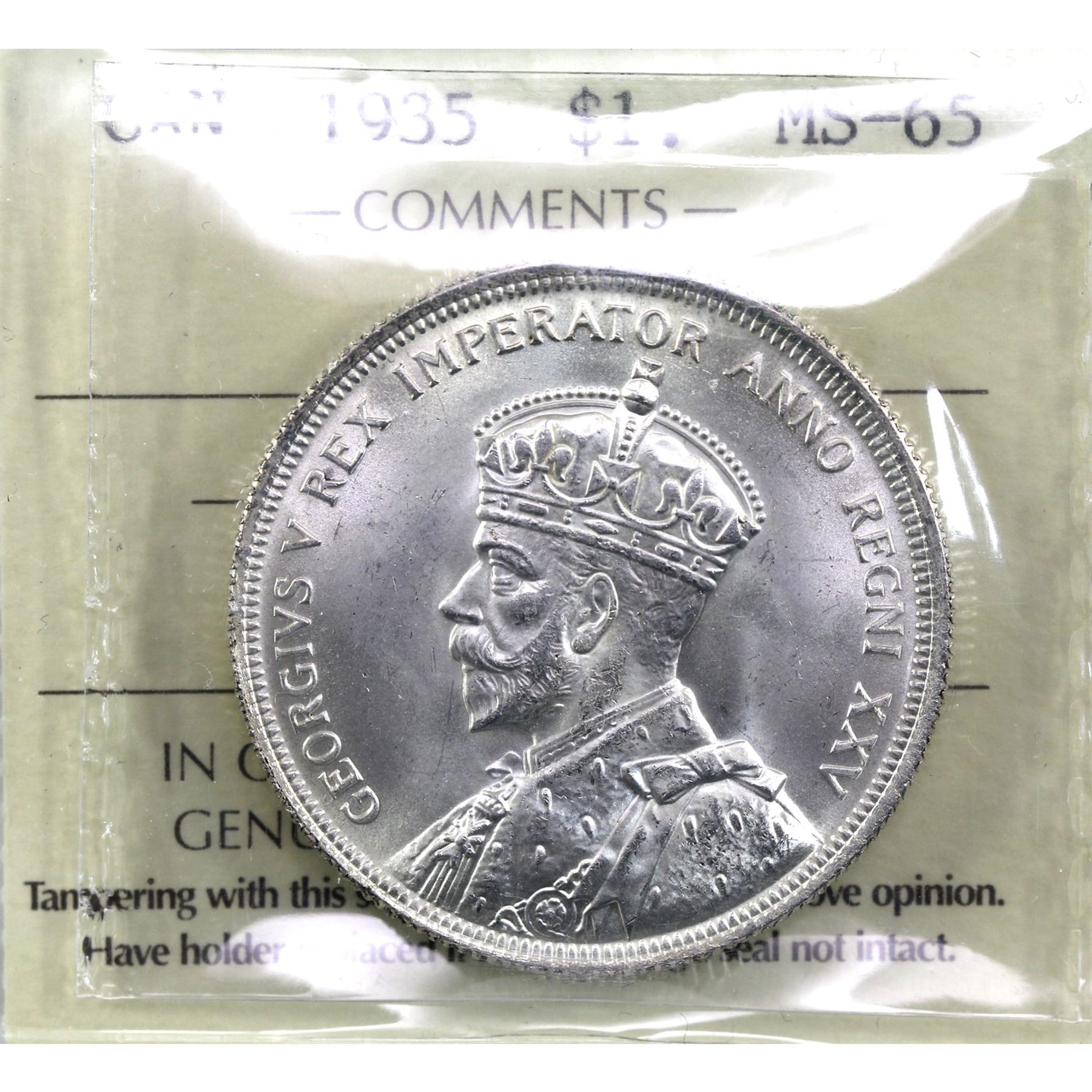 Silver $1 1935 ICCS Certified MS-65. An exceptional eye appeal coin with qualities you would expect in a higher grade! Worth a premium bid!
