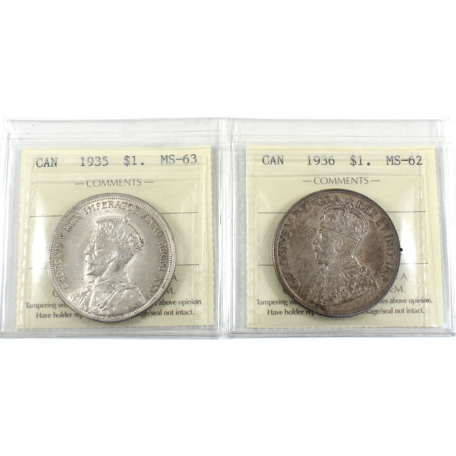 Silver $1 1935 MS-63 & 1936 MS-62 both ICCS Certified.
