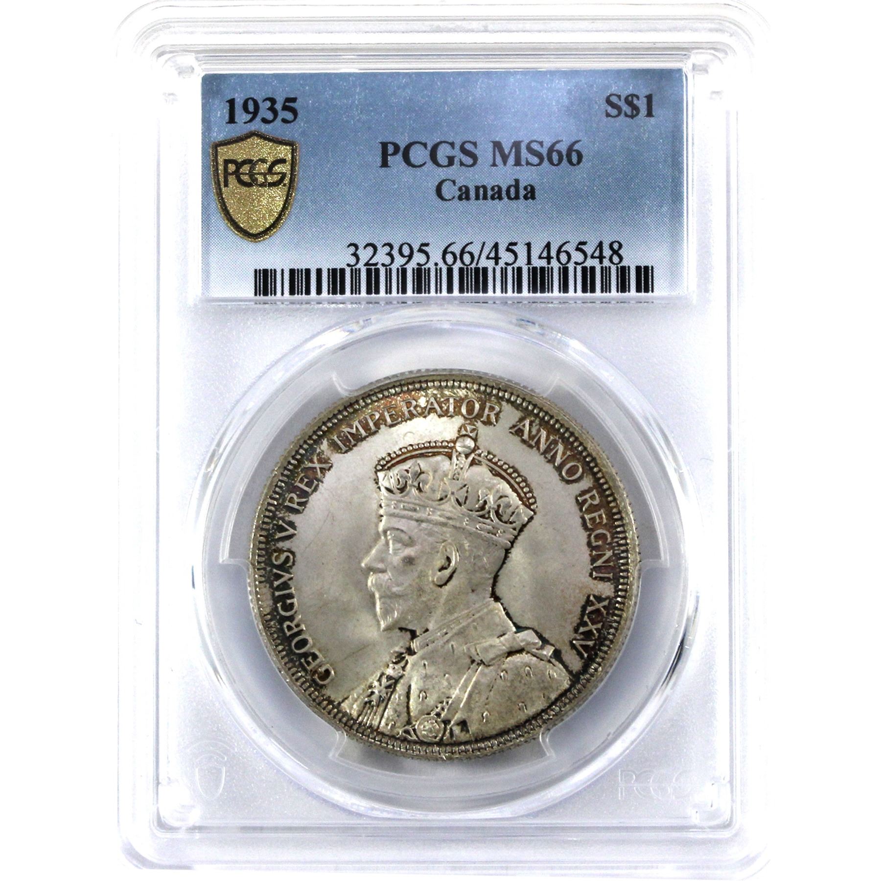Silver $1 1935 PCGS MS66. Natural Coin with Appealing Tones of Copper and Verdant-Green