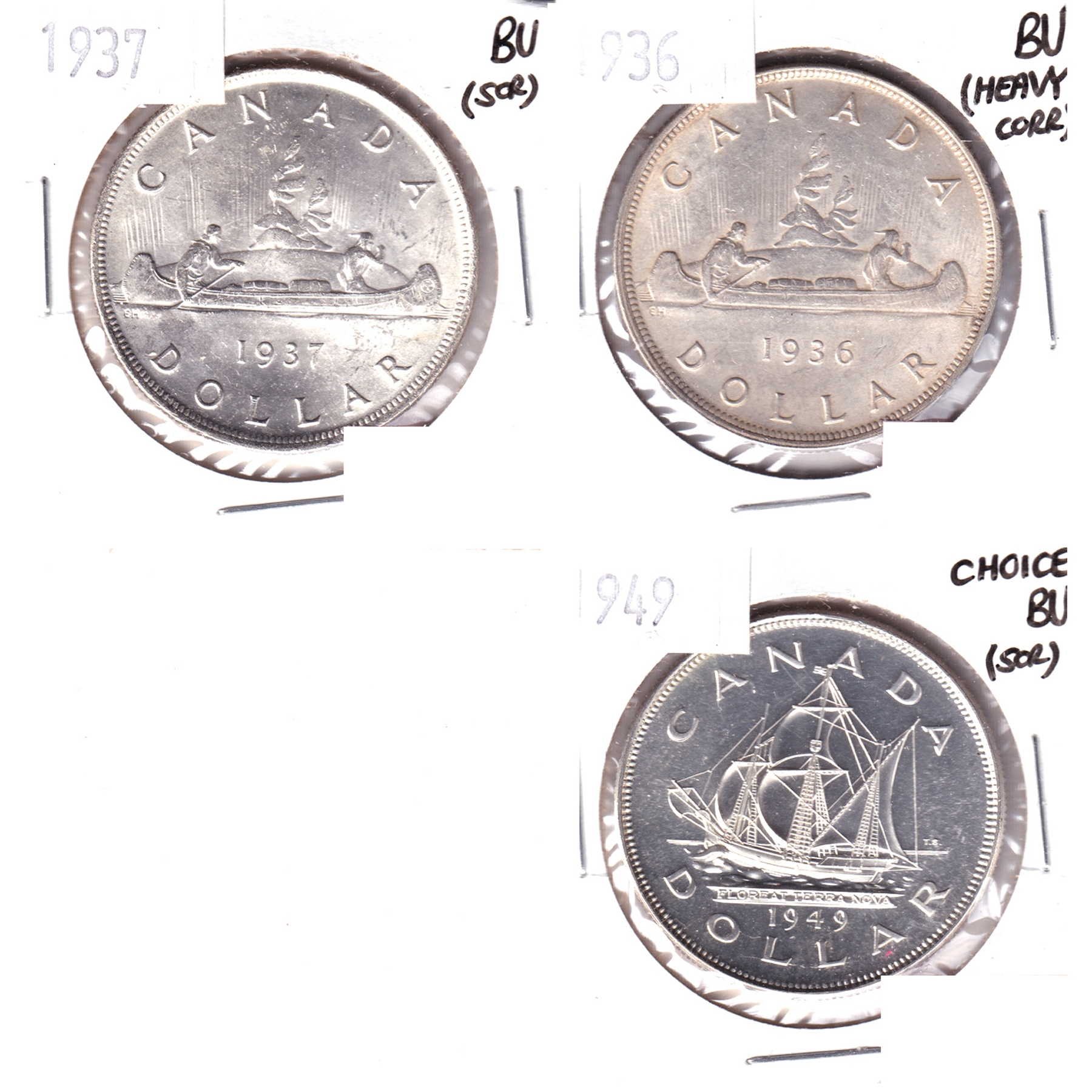 INCLUDES: 1936 BU (Heavy corrosion), 1937 BU (Scratched) & 1949 Choice BU (Scratched). 3pcs.
