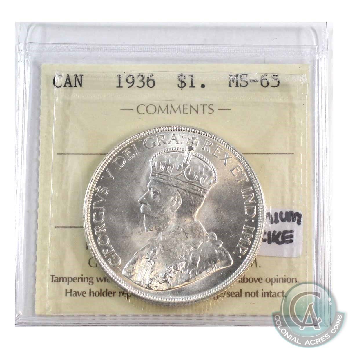 Silver $1 1936 ICCS Certified MS-65! A premium Strike coin with blast white fields. Coin shows as a higher grade!