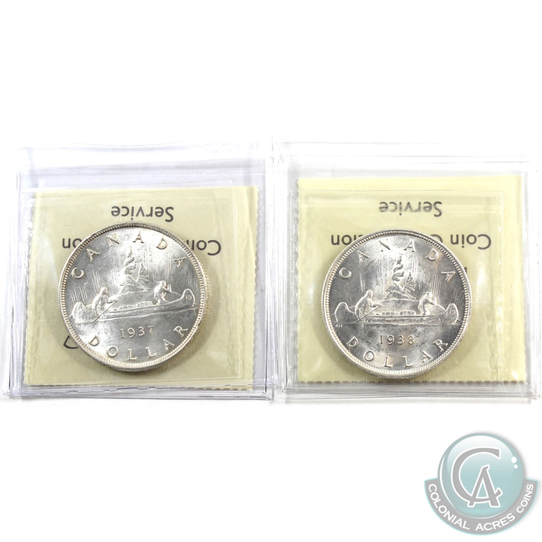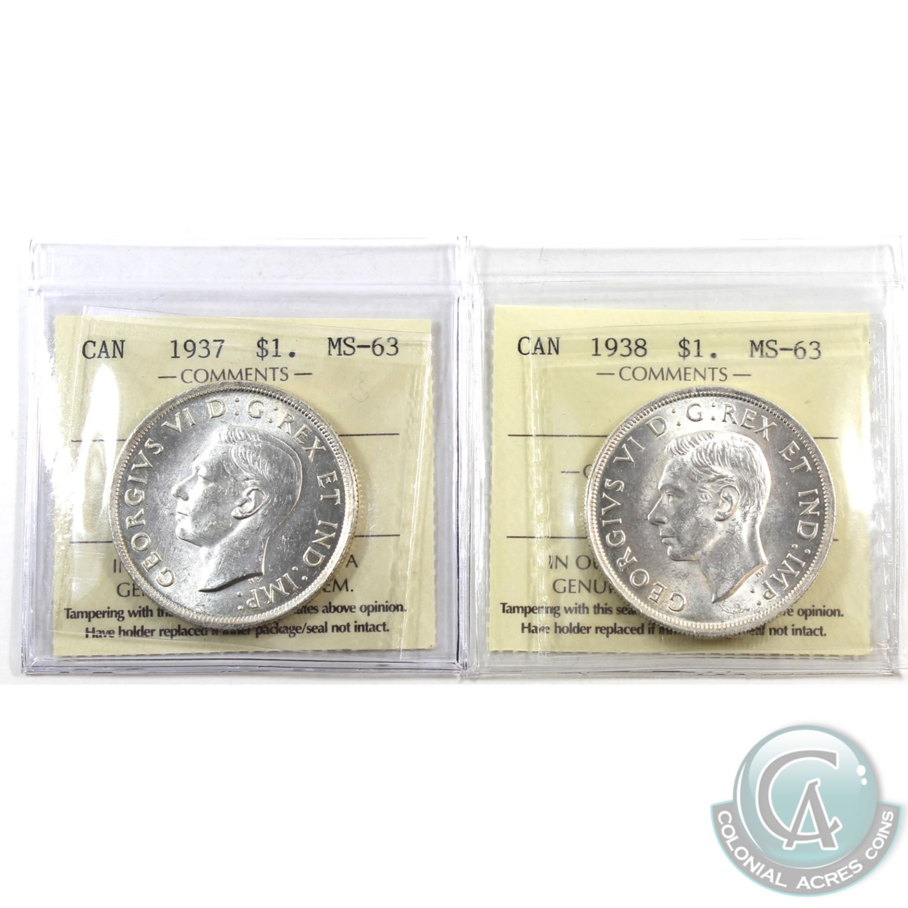 Silver $1 1937 & 1938 Both ICCS Certified MS-63! An attractive pair both near full white coins. 2pcs