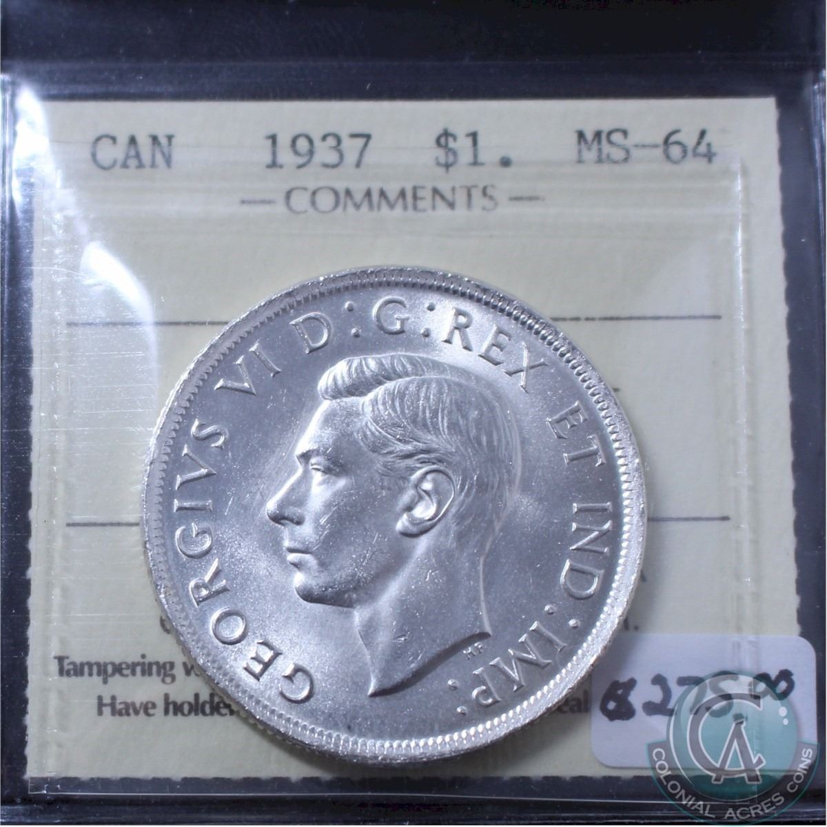 Silver $1 1937 ICCS Certified MS-64