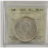 Silver $1 1937 ICCS Certified MS64. White Mint bloom fields accented with very light hints of golden. Coin has exceptional eye appeal.