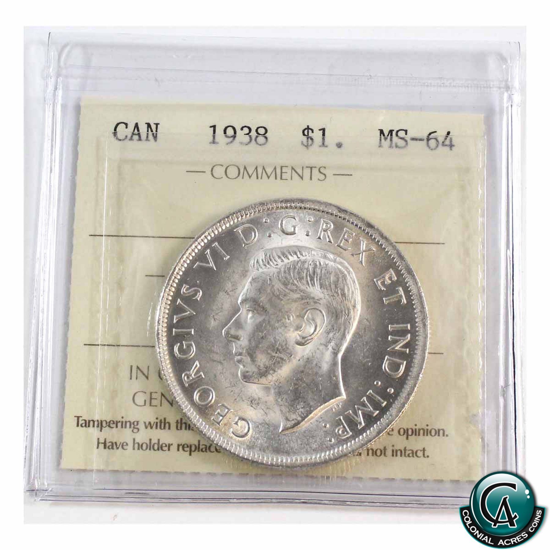 Silver $1 1938 ICCS Certified MS-64! *Key Date* Soft white mint bloom throughout
