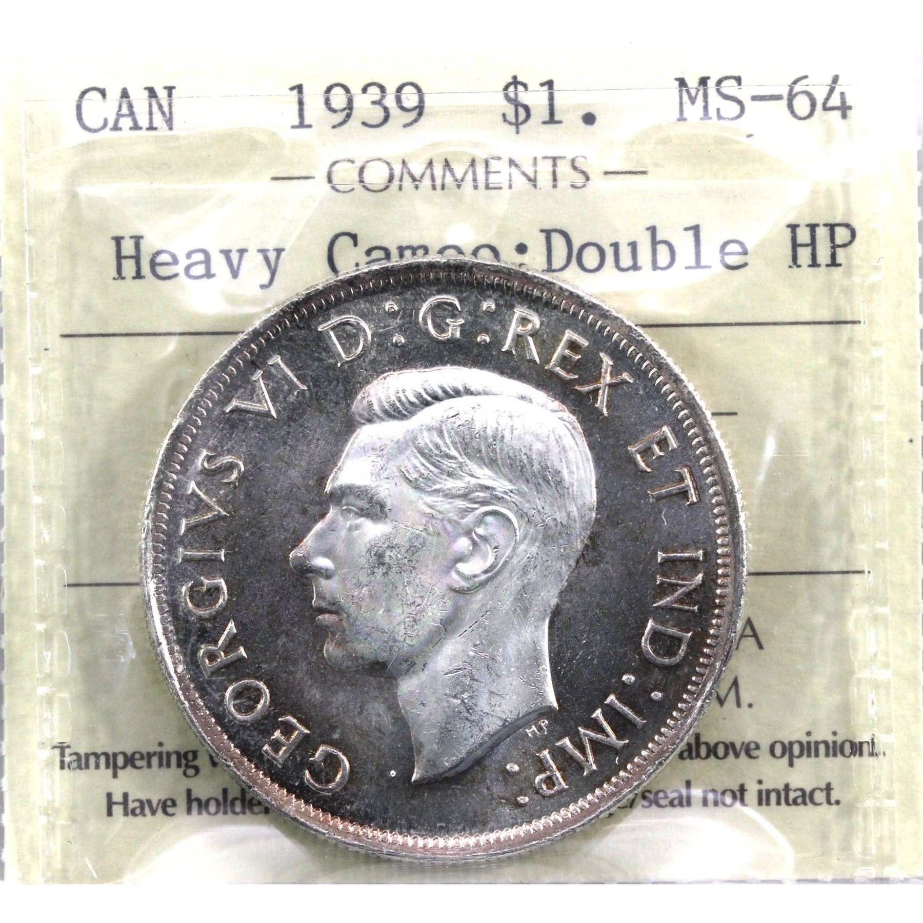 Silver $1 1939 Double HP ICCS Certified MS-64 Heavy Cameo