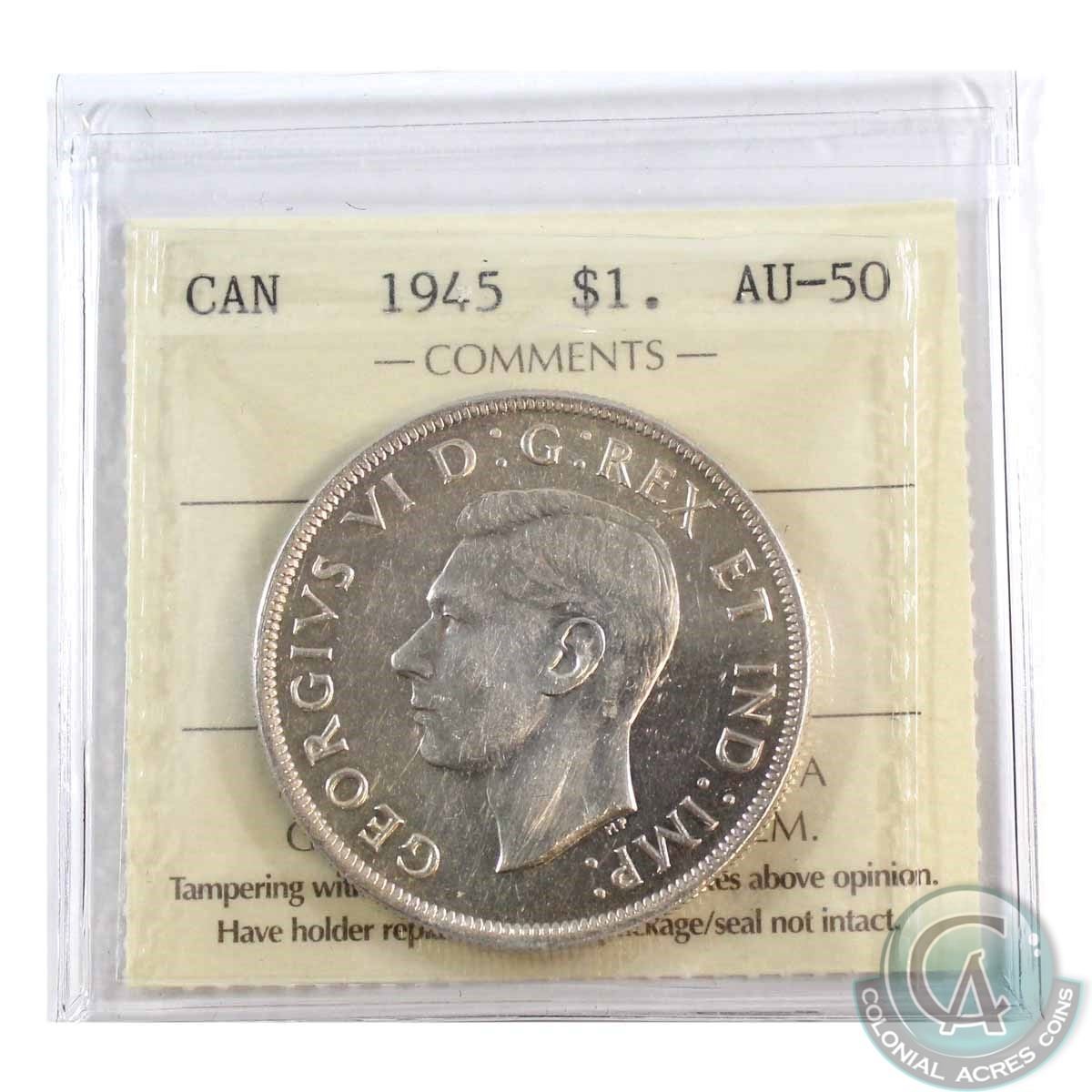 Silver $1 1945 5/5 ICCS Certified AU-50. *Key Date*