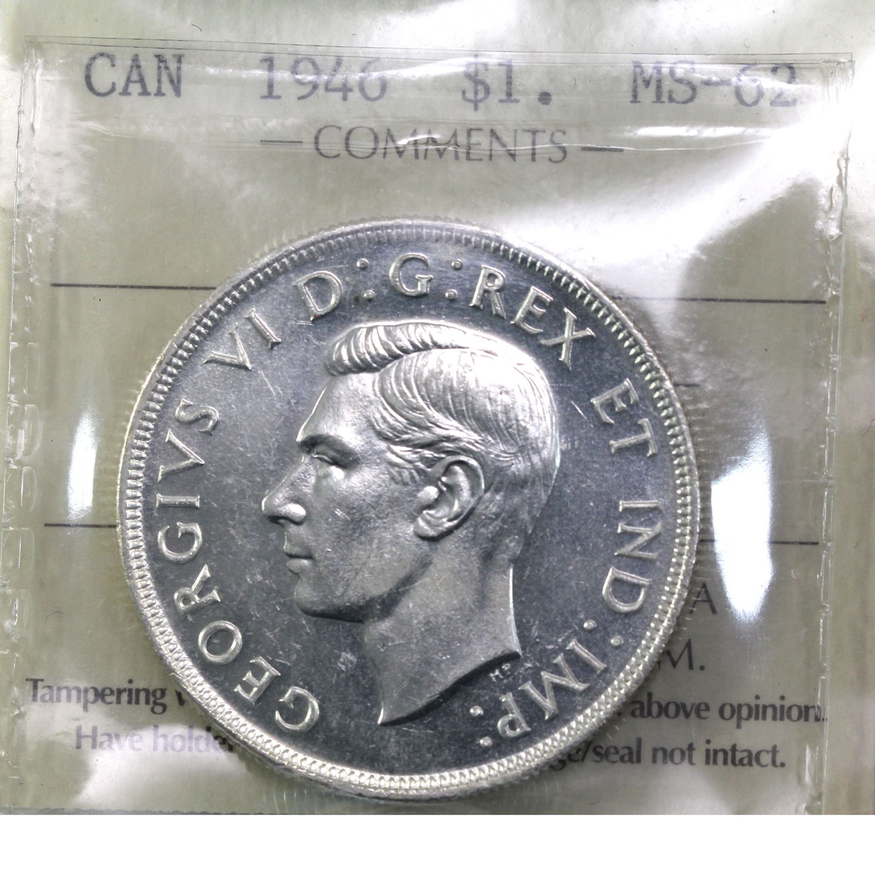 Silver $1 1946 ICCS Certified MS-62. An overall clean coin with great eye appeal.