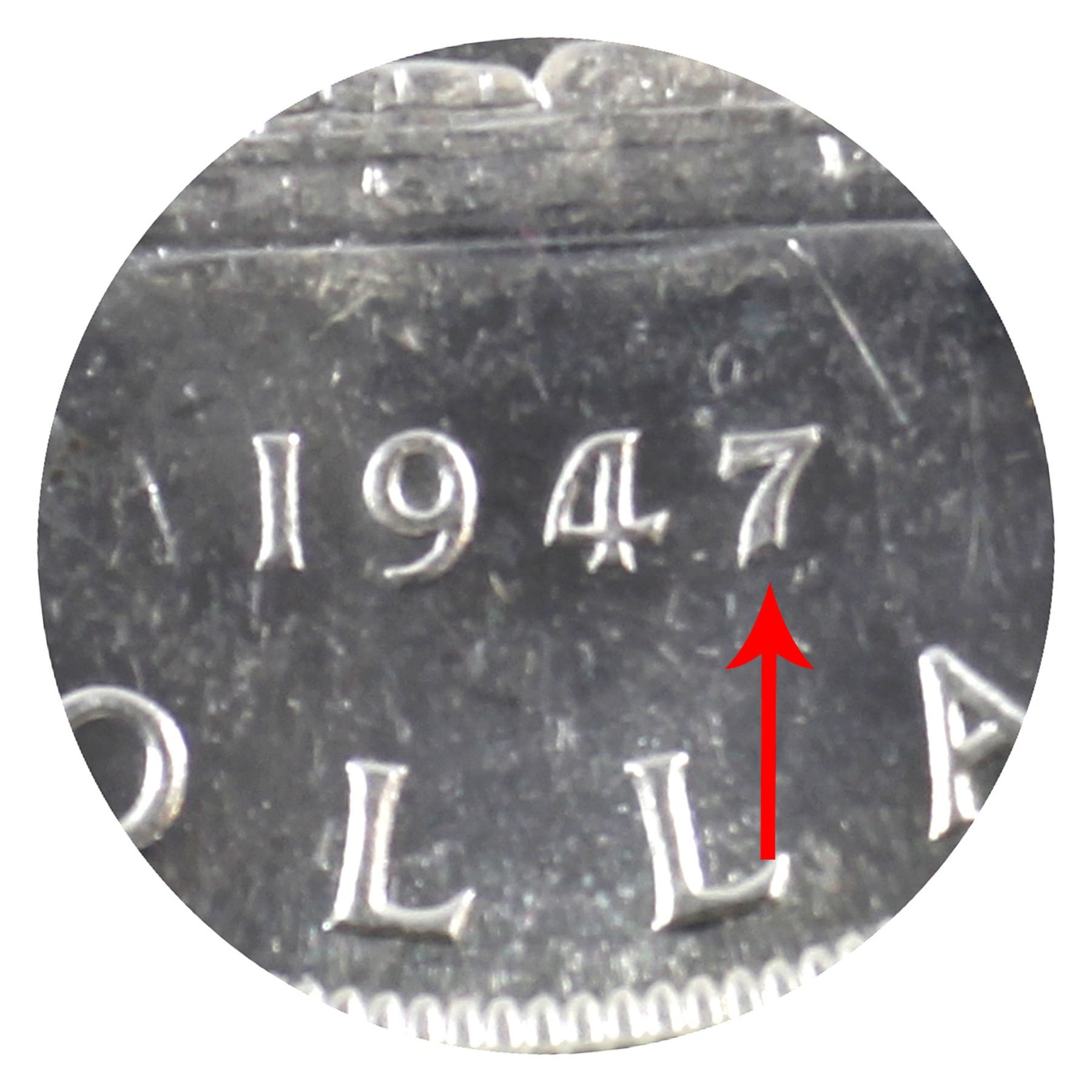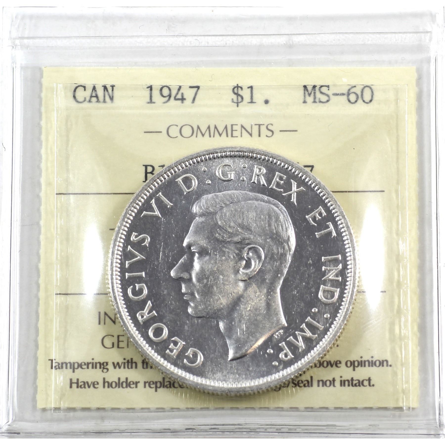 Silver $1 1947 Blunt 7, 7/7 ICCS Certified MS-60. Bright coin great details for the grade level.
