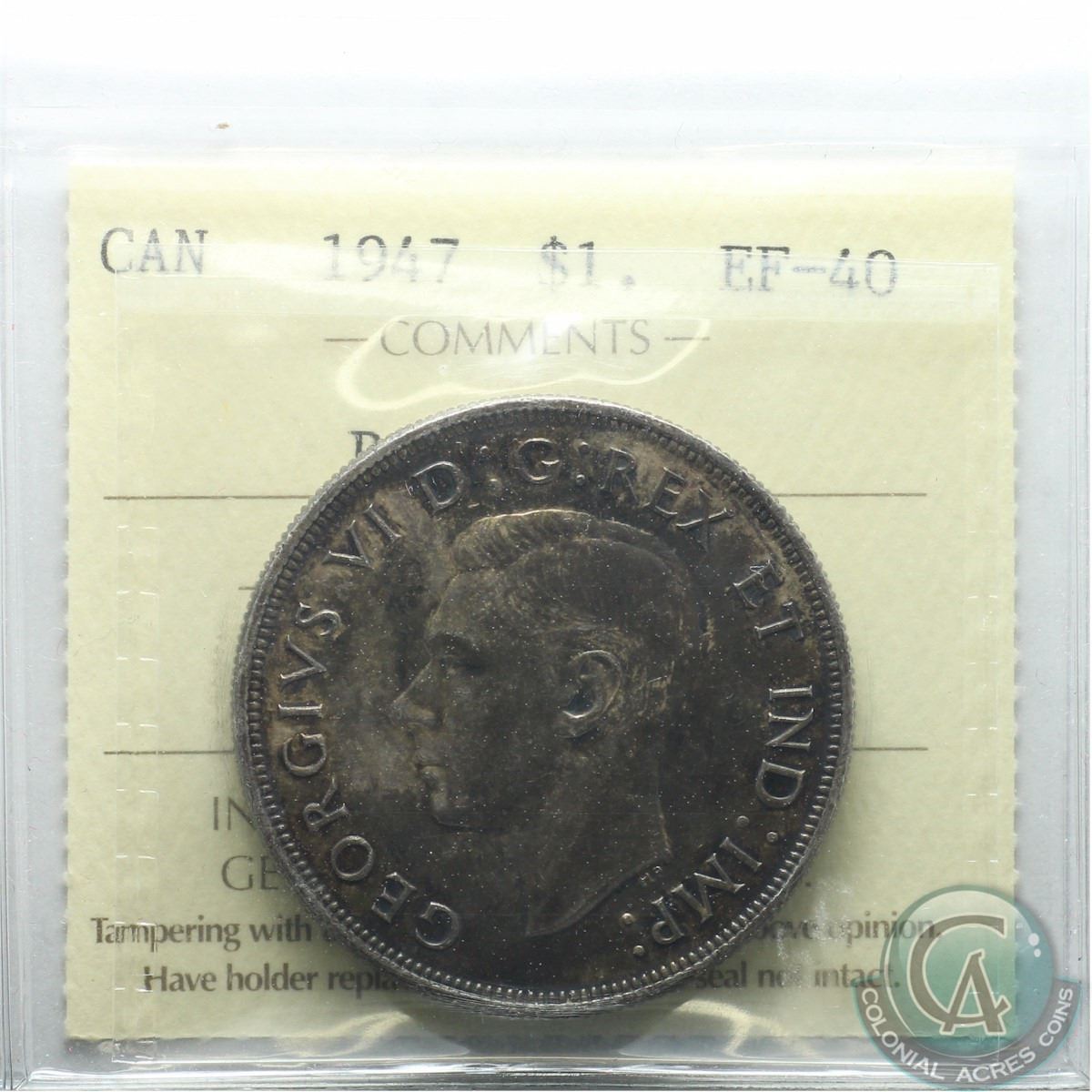 Silver $1 1947 Blunt 7 ICCS Certified EF-40; Consistent Dark toning throughout.
