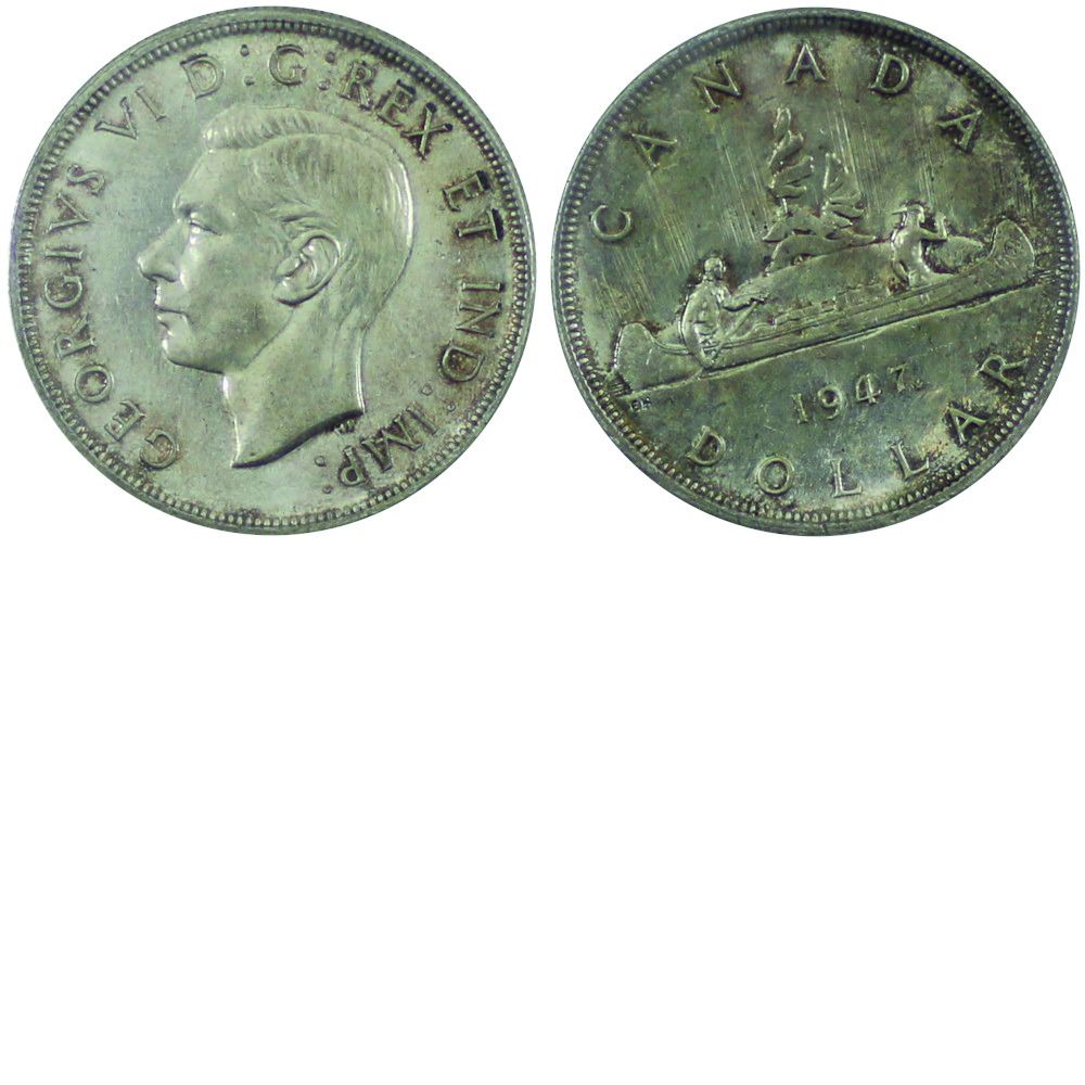 Silver $1 1947 Maple Leaf 2x HP ICCS MS-60