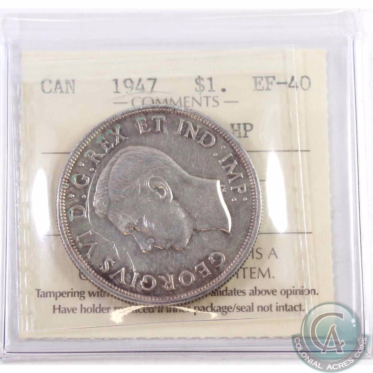 Silver $1 1947 Maple Leaf Double HP ICCS Certified EF-40