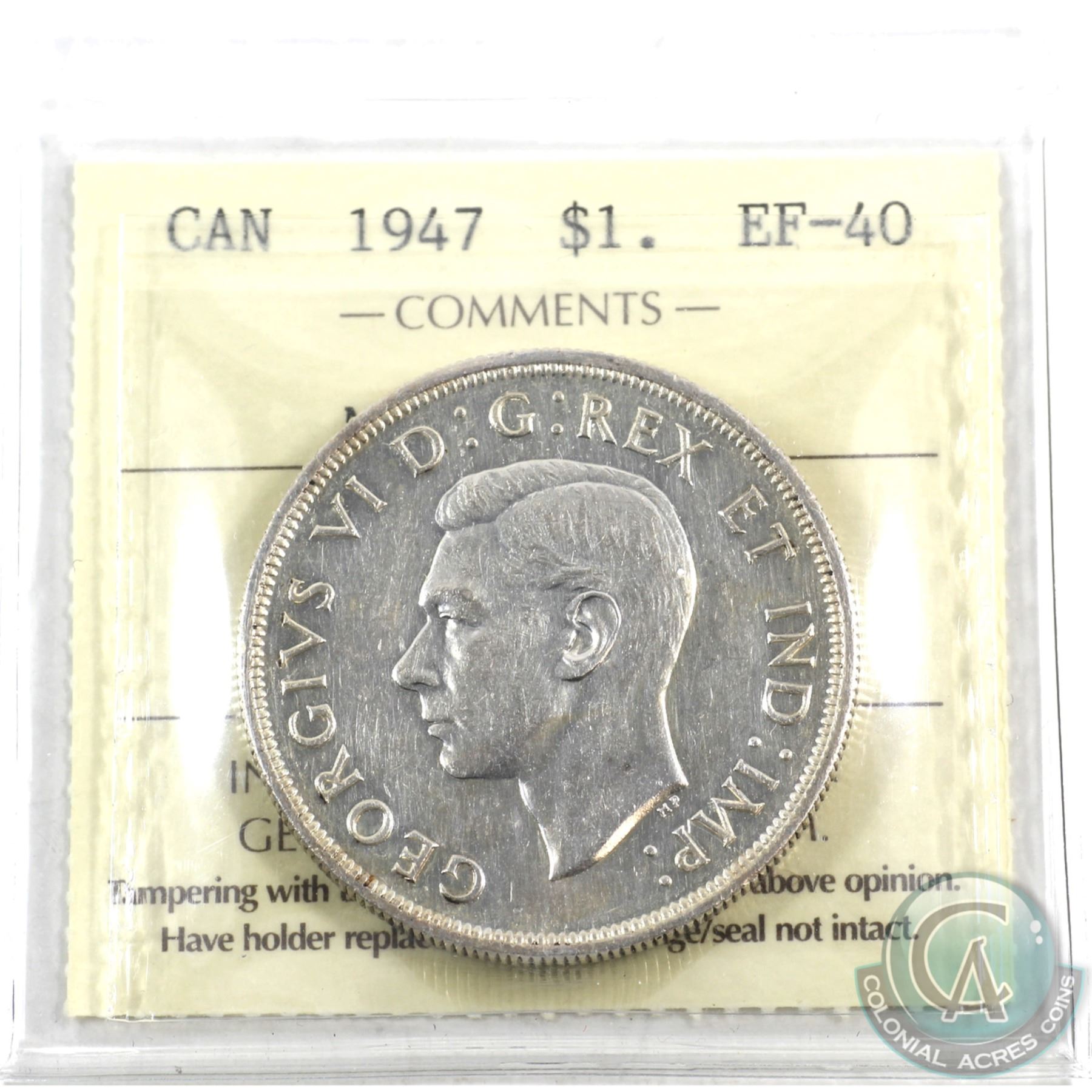Silver $1 1947 Maple Leaf ICCS Certified EF-40. A nice mid-grade example of this key date variety.