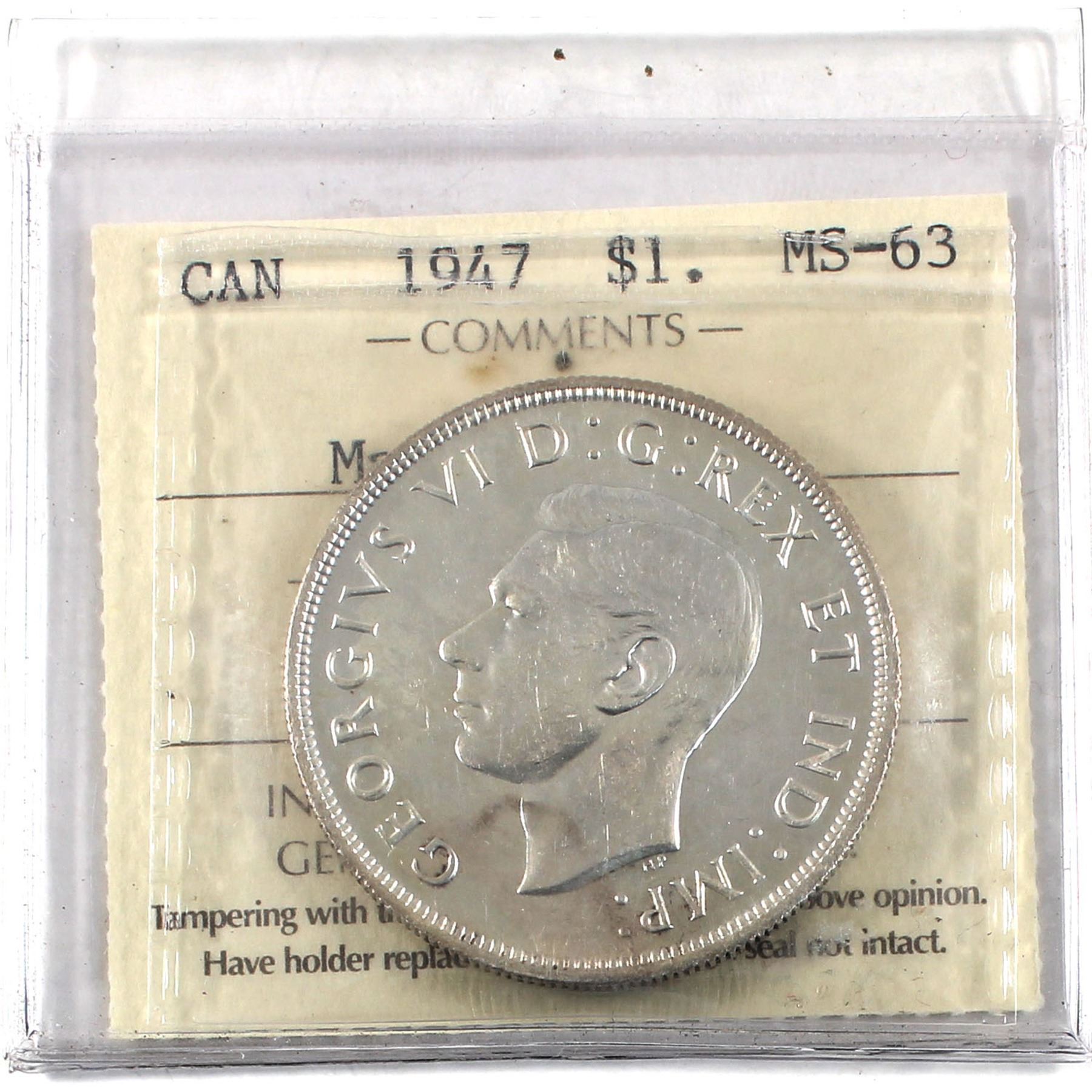 Silver $1 1947 Maple Leaf ICCS Certified MS-63!