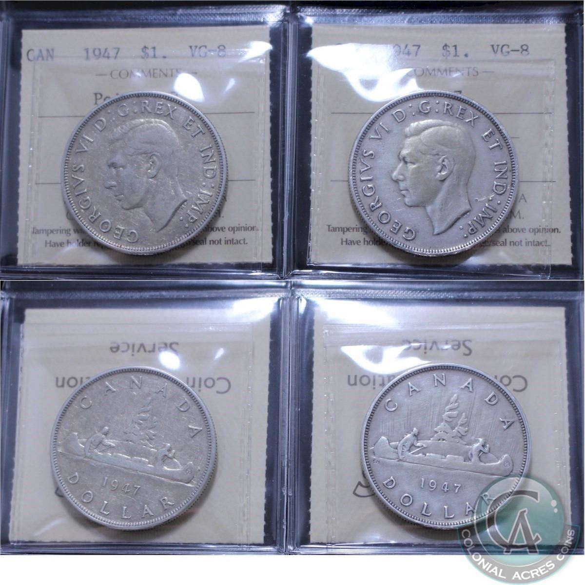 Silver $1 1947 Pointed 7 & 1947 Blunt 7 Both ICCS Certified VG-8. 2pcs