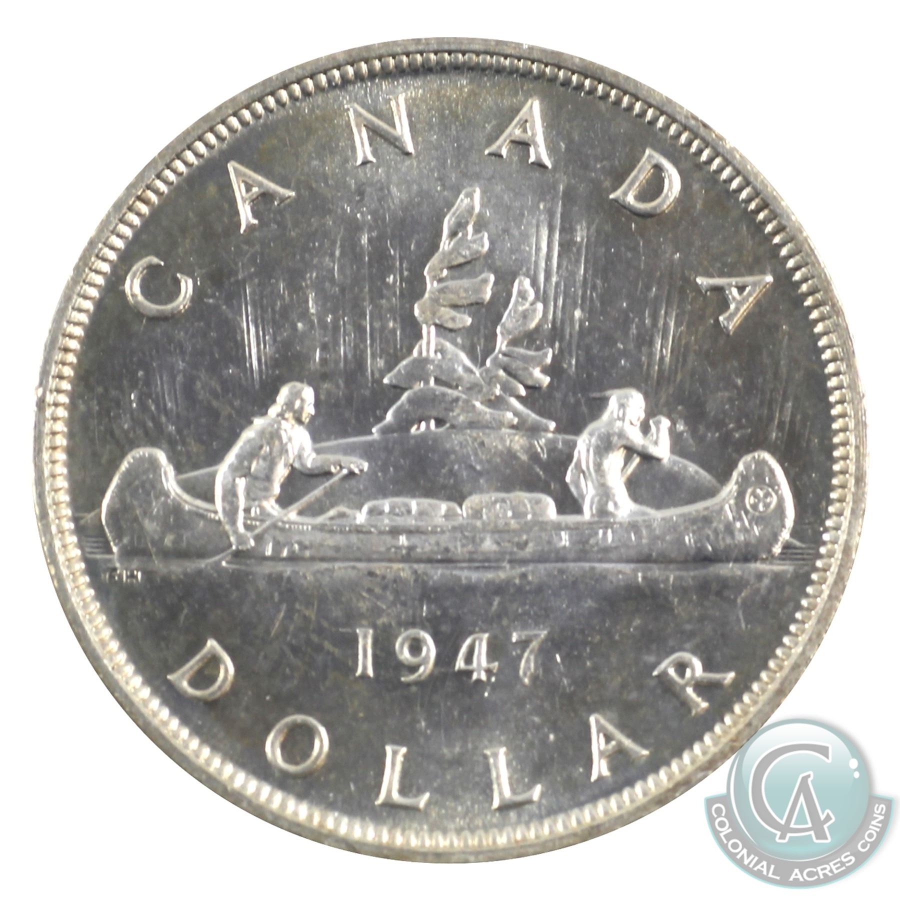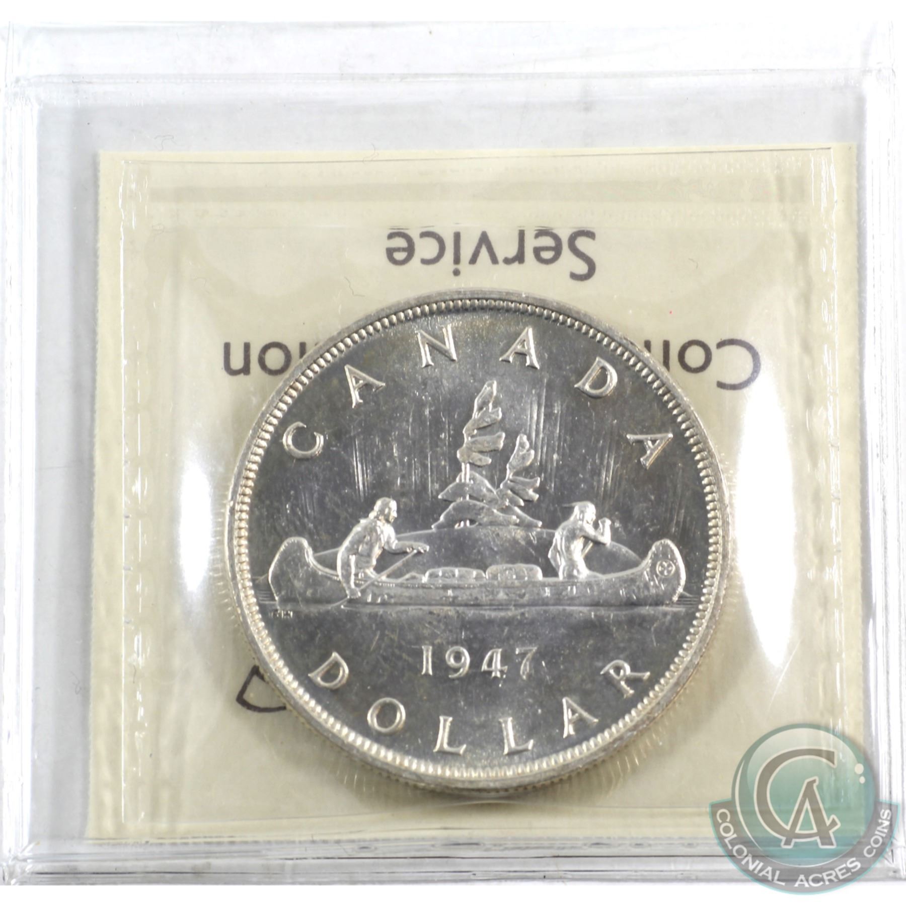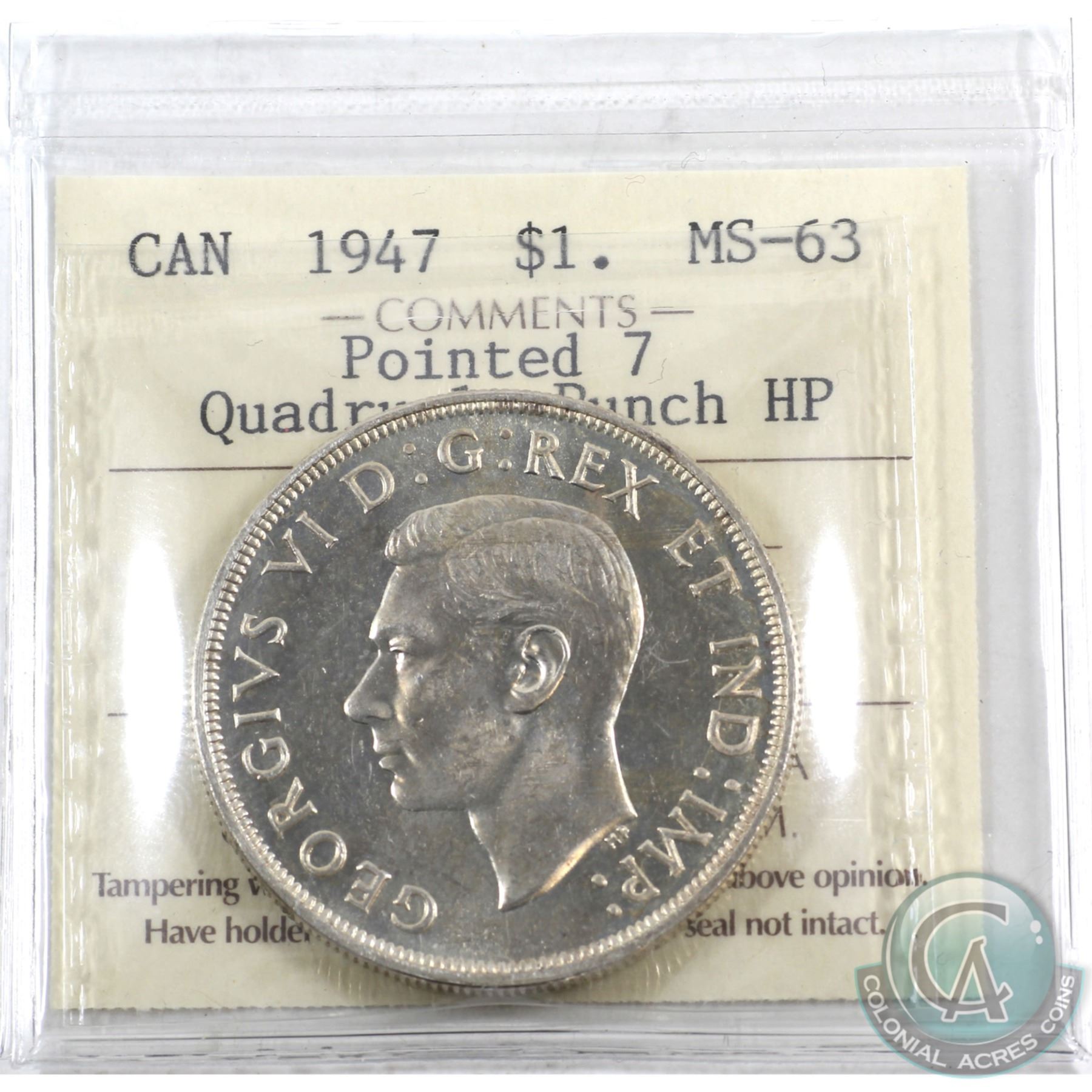 Silver $1 1947 Pointed 7, 4x HP ICCS Certified MS-63. A bright flashy coin.