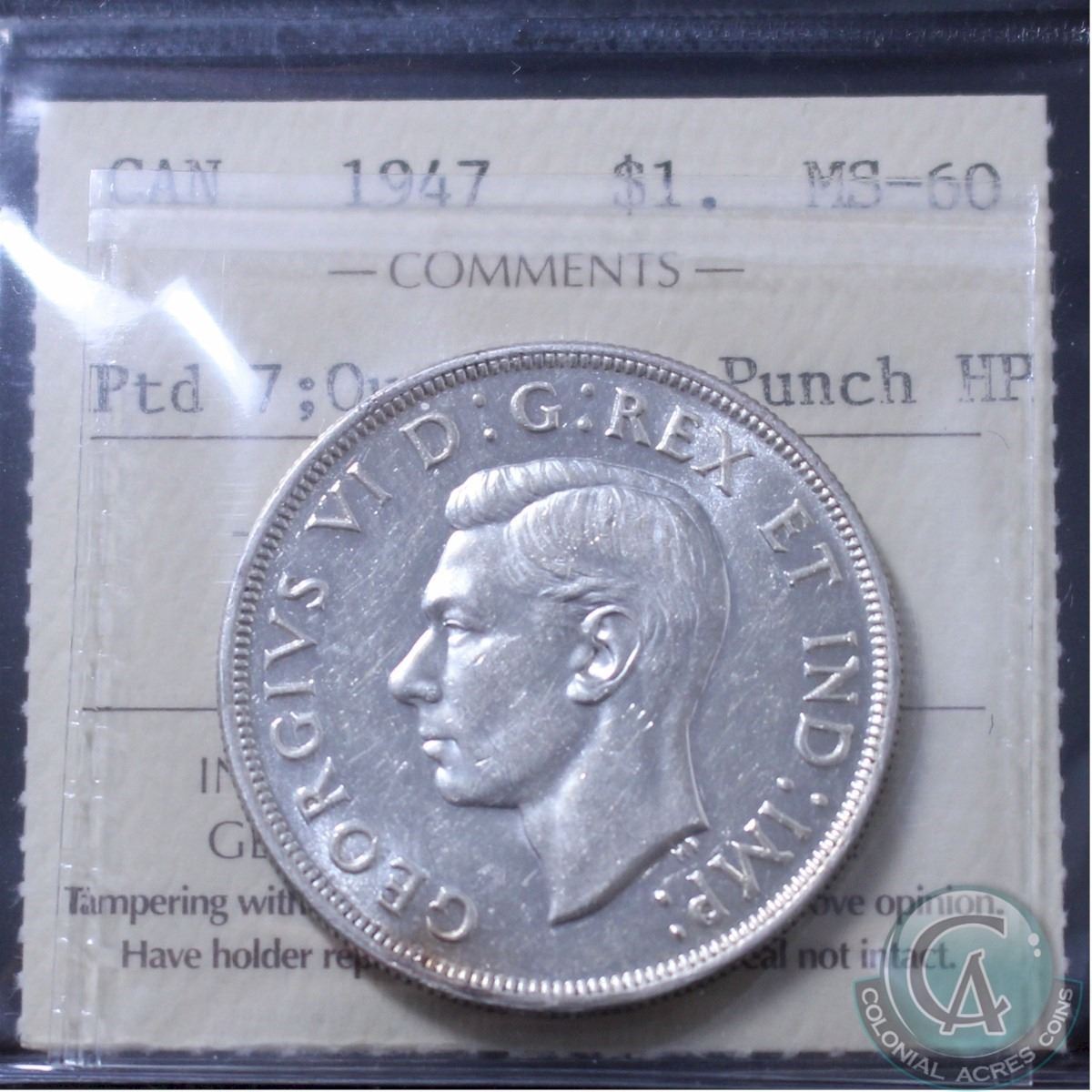 Silver $1 1947 Pointed 7 ICCS Certified MS-60; 4xHP
