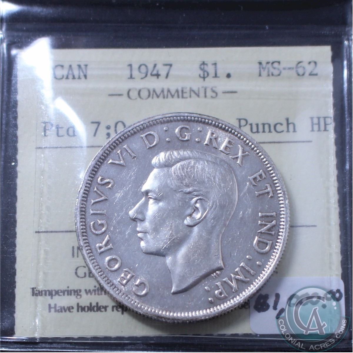 Silver $1 1947 Pointed 7 ICCS Certified MS-62; 4xHP