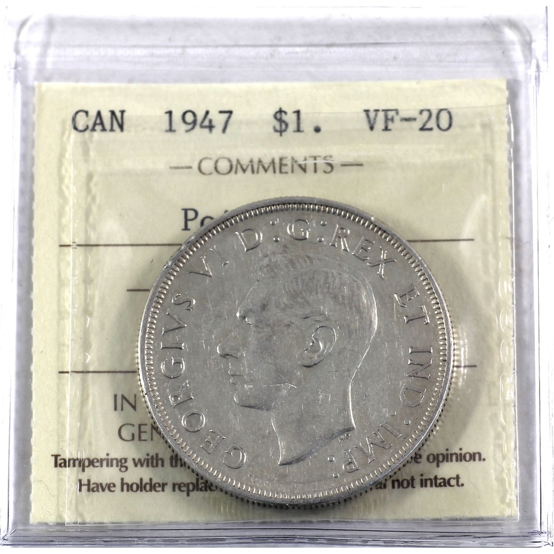Silver $1 1947 Pointed 7 ICCS Certified VF-20