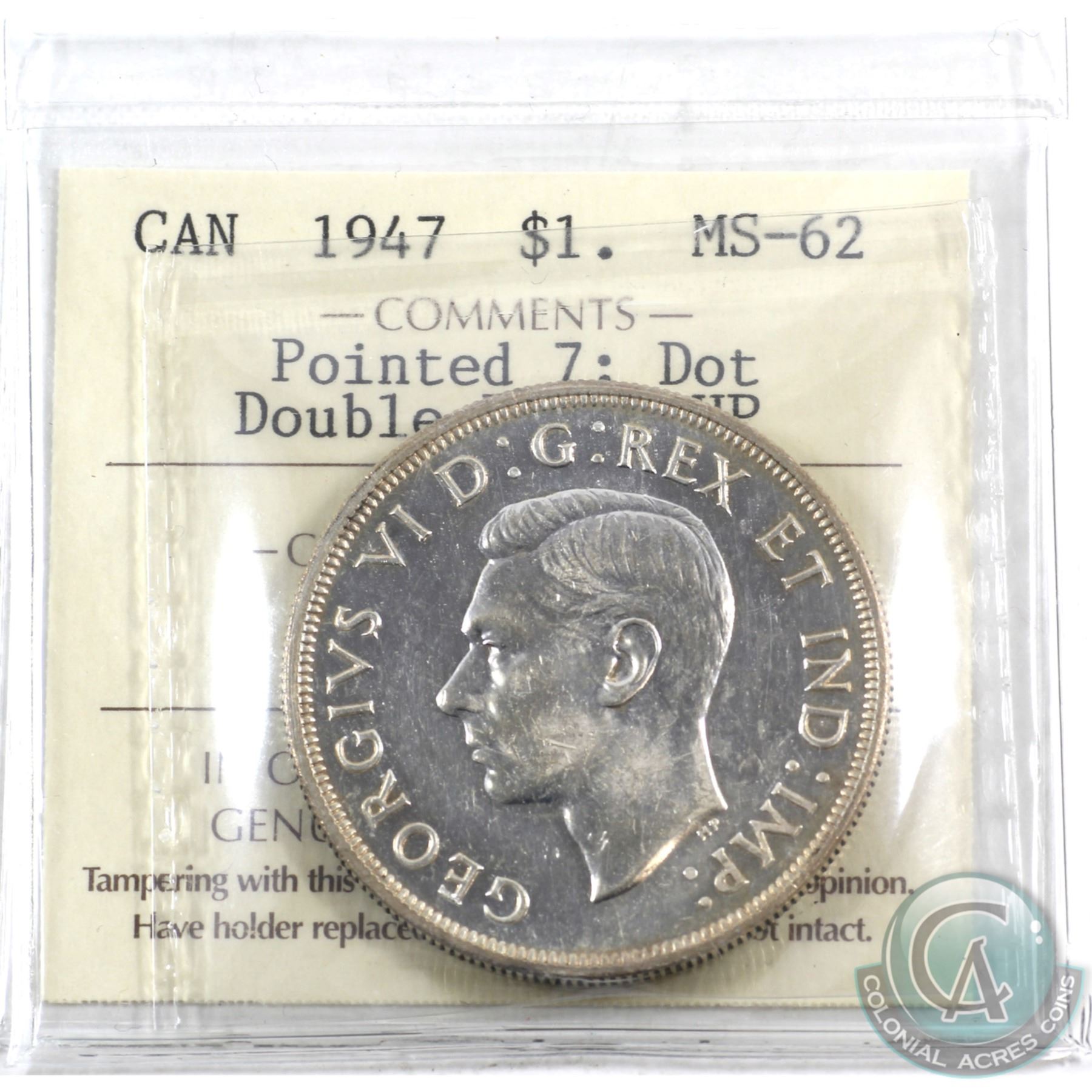 Silver $1 1947 Pointed 7 with Dot & 2x HP ICCS Certified MS-62