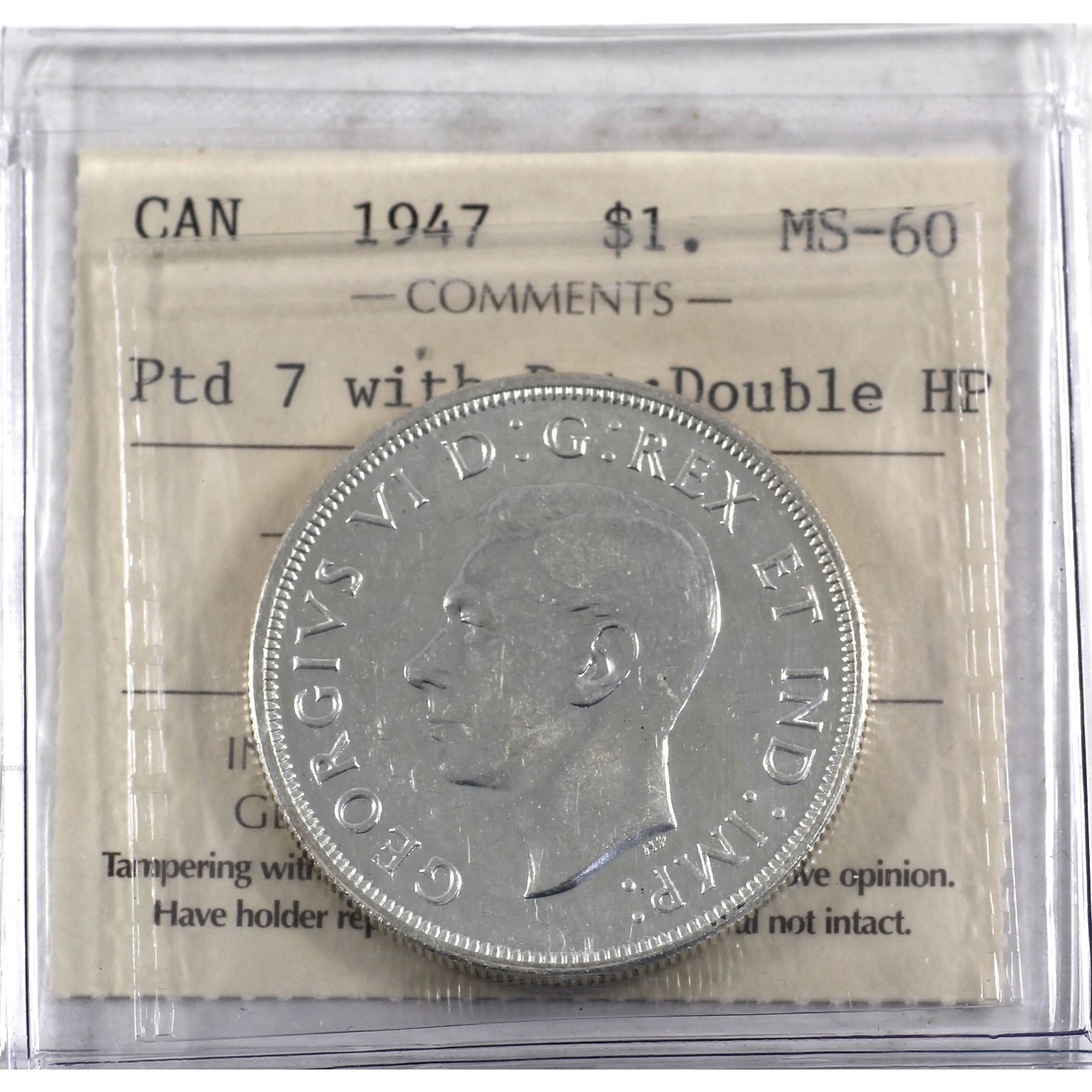 Silver $1 1947 Pointed 7 with Dot, Double HP ICCS Certified MS-60. A bright flashy Coin!