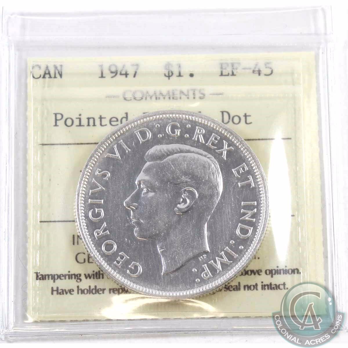 Silver $1 1947 Pointed 7 with Dot ICCS Certified EF-45