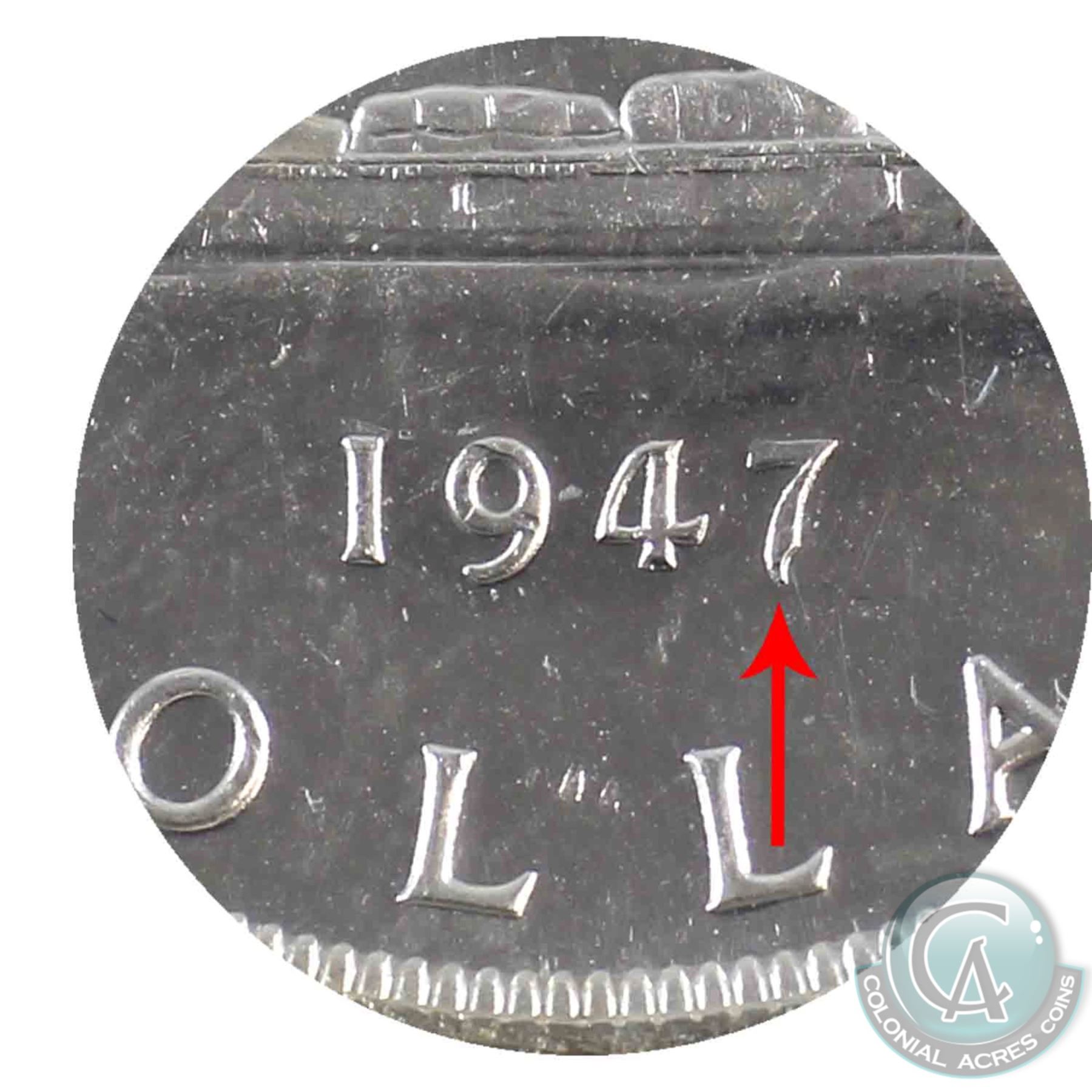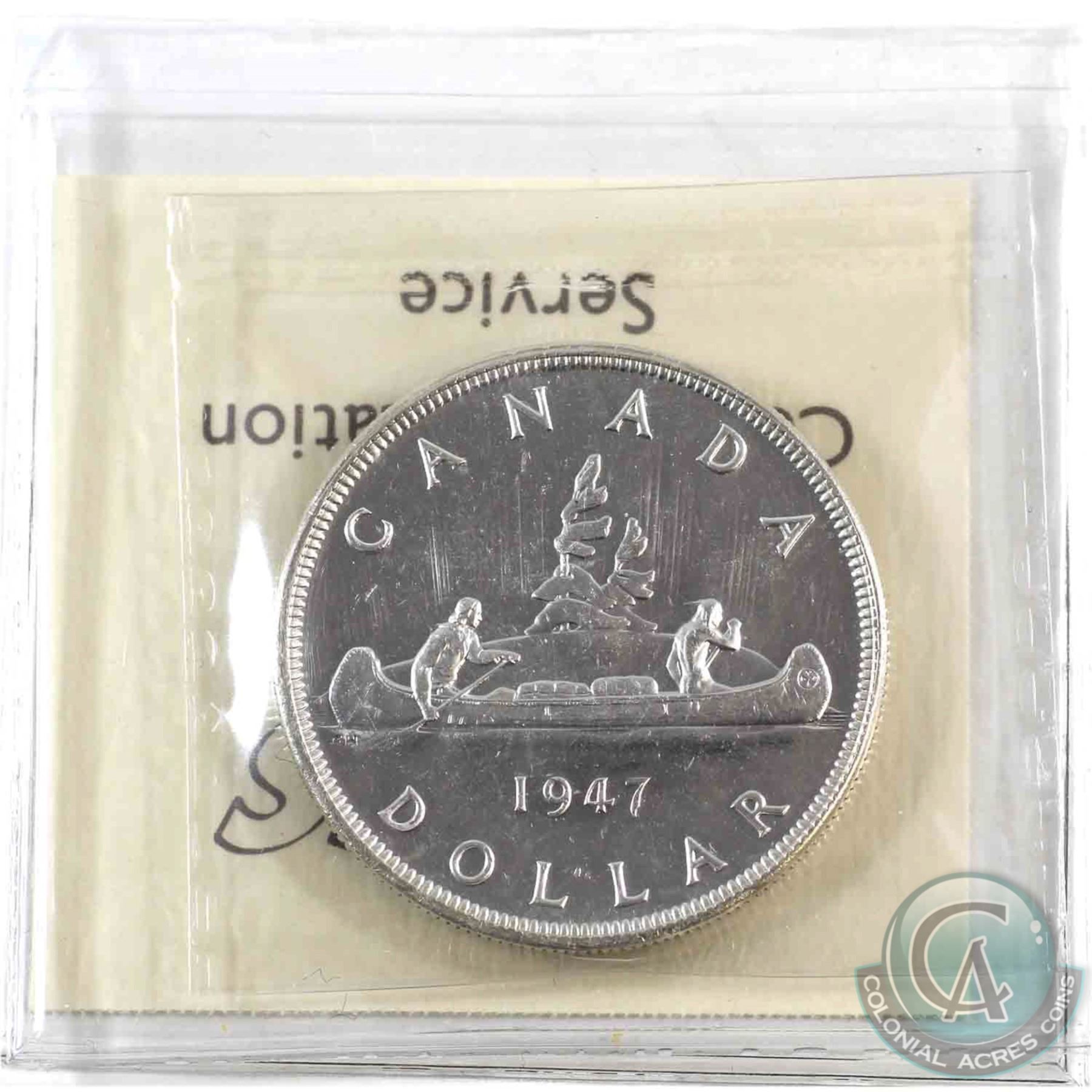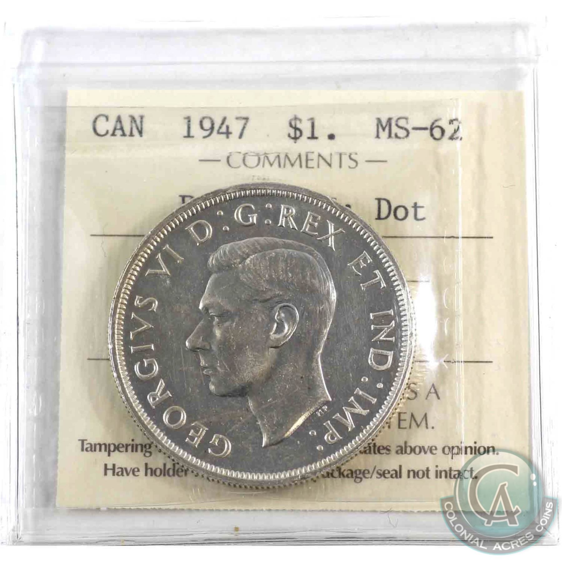 Silver $1 1947 Pointed 7 with Dot ICCS Certified MS-62. Beautiful example of this rare variety!