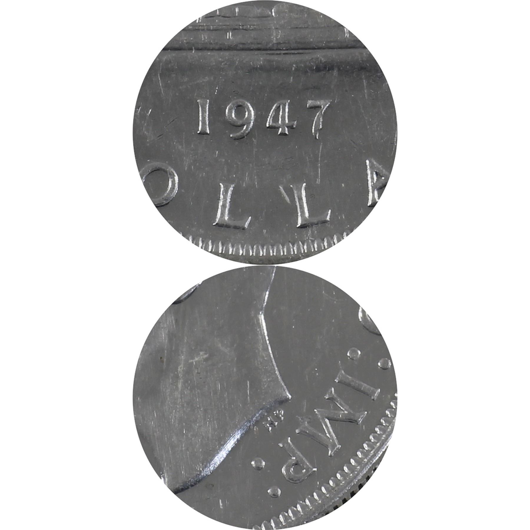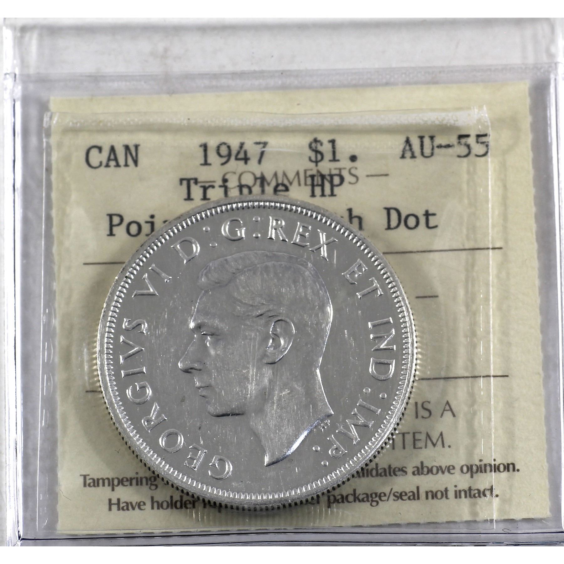 Silver $1 1947 Pointed 7 with Dot, Triple HP ICCS Certified AU-55. An eye catching example of this scarcer variety!