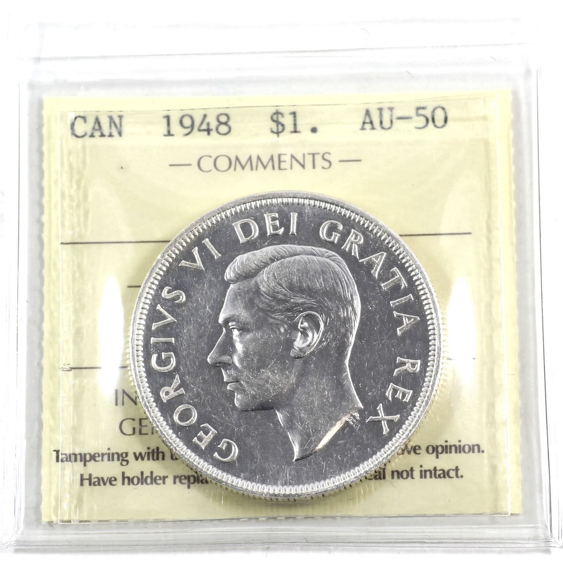 Silver $1 1948 ICCS Certified AU-50! A nice problem free example of this highly sought after Key Date!
